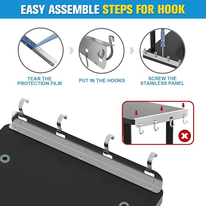 • MORE STEADY AND STABLE: 3 bathroom shelves adds 2 aluminum tubs make this small corner shelf more stable and durable, also these 5 plastic non-slip feet can protect your countertop surface better. 4 stainless steel hooks fit for keys, hair ties, jewelry and so on, keep them handy and out of the way.