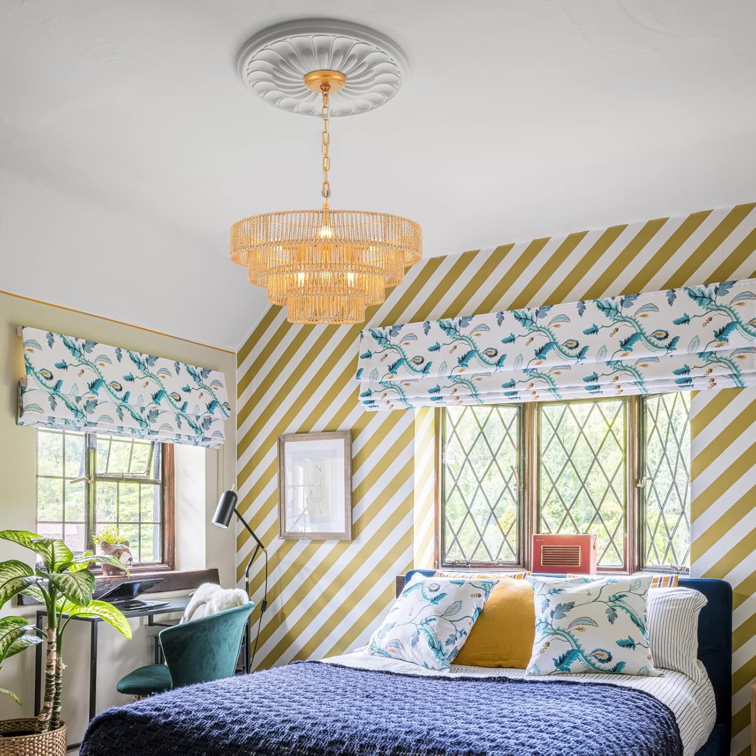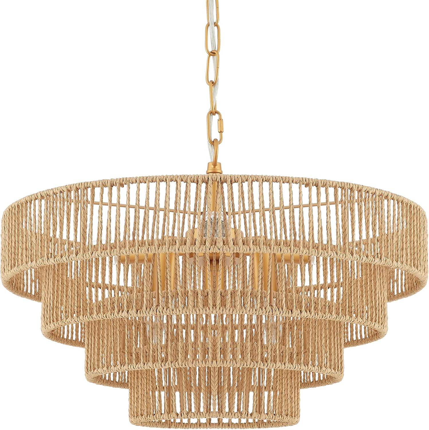 • Eye-Catching Design: This woven rattan chandelier is made of wicker woven on natural wood color with high-quality 4 round metal frames finished by brass, forming a semicircular hollow cage, combining modern and traditional feelings to your home.