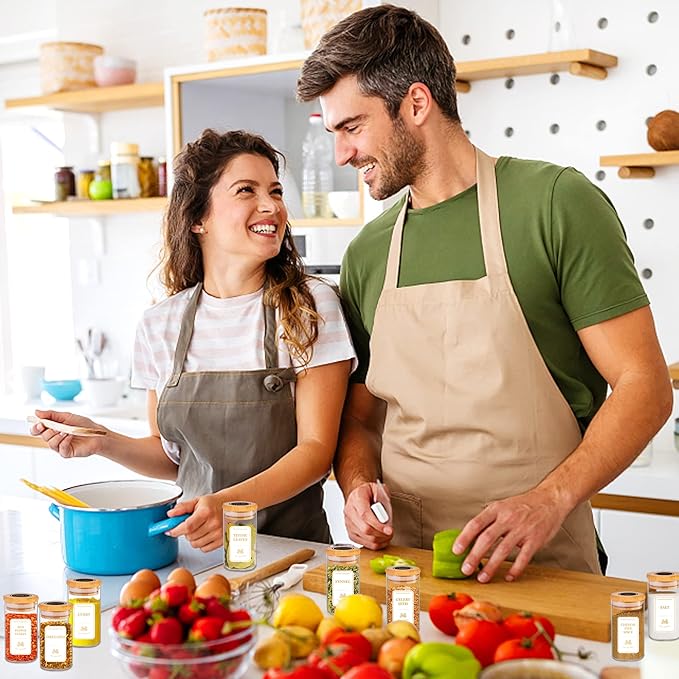 • 【Airtight Spice Jars】Twist the lid for a satisfying "pop"—spices stay fresh. Seasoning jars with labels seal tight via food-safe silicone ring, while empty airtight glass spice jars with labels and lids lock out moisture/air, keeping every pinch vibrant.