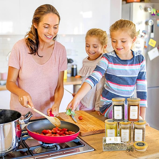 • 【Cute Bamboo Spice Jars Set】Get 35 durable 4 oz seasoning jars with 426 waterproof labels, a funnel, spoon, brush, and 2 pens. These small spice storage containers with labels and lids aren’t just containers—they’re tiny stylists, turning clutter into tidy charm.