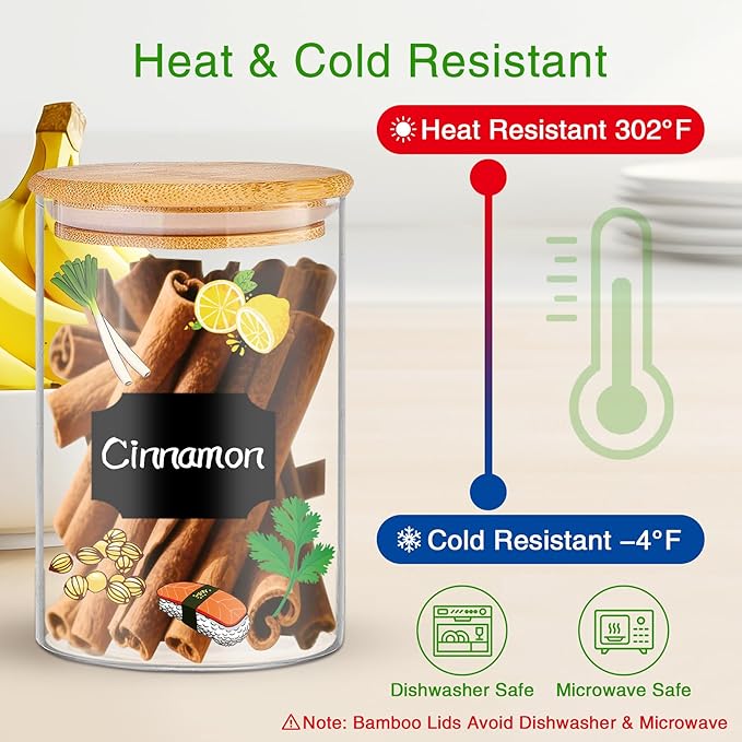 • 【Ultra-Durable】Built with borosilicate glass, the glass pantry storage containers set with airtight bamboo lids withstand -4°F to 302°F without cracking. Designed for daily use, these durable food jars & canisters retain integrity through all temperature changes.