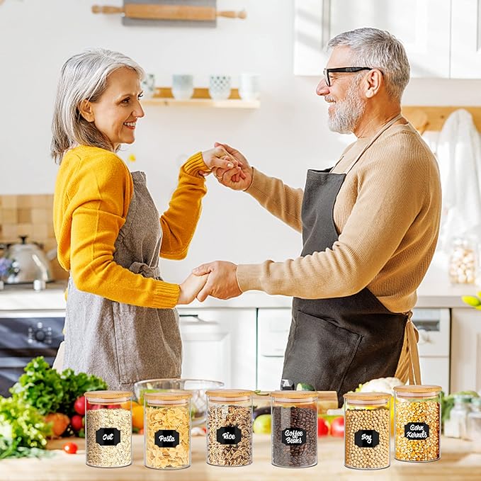 • 【Effortless Organization】Stay perfectly organized with 58 colorful labels included with these kitchen jars. The uniform airtight glass pantry storage containers set with bamboo lids stack neatly to maximize space - ideal for small kitchens storing flour, nuts or pet treats.