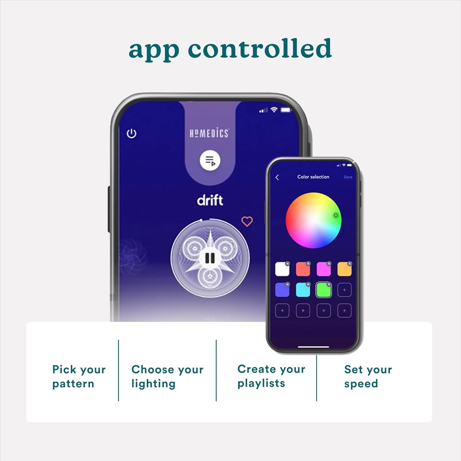 • App Controlled (iOS and Android): Choose from hundreds of mesmerizing patterns and ambient light colors, set speed, create custom playlists, and schedule your designs. Very easy to use!