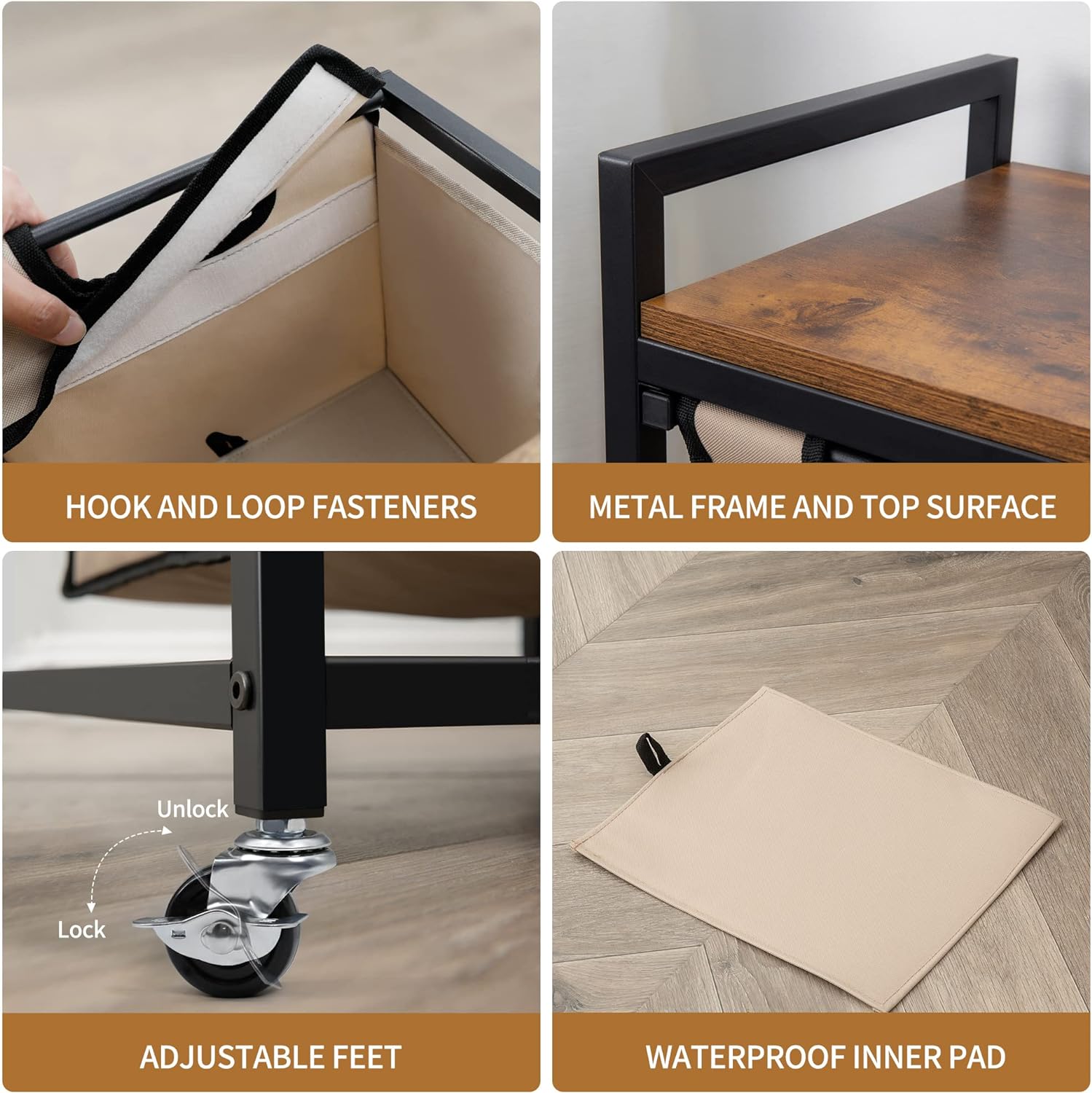 • ✅A VERSATILE HELPER - Suntage laundry hamper organizer is a flat-top laundry organizer that uses 6 laundry bags to pre-sort laundry and laundry room storage. This dirty clothes hamper has a top laminate panel with a rustic brown finish. It provides a smooth top storage shelf, perfect for folding laundry, holding large laundry baskets, or storing bathroom toiletries.