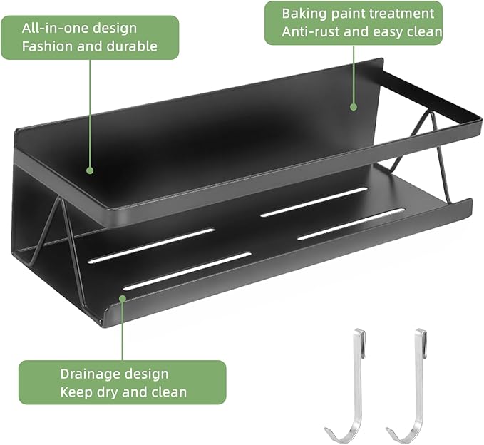 • 【Package Details】Size: 1pcs of rack in 12.2inch * 4.2 inch * 3.5inch, and 1pcs of rack in 12.6inch * 4.3 inch * 3.5inch,, paste film * 2pcs, stainless steel hooks * 2pcs.