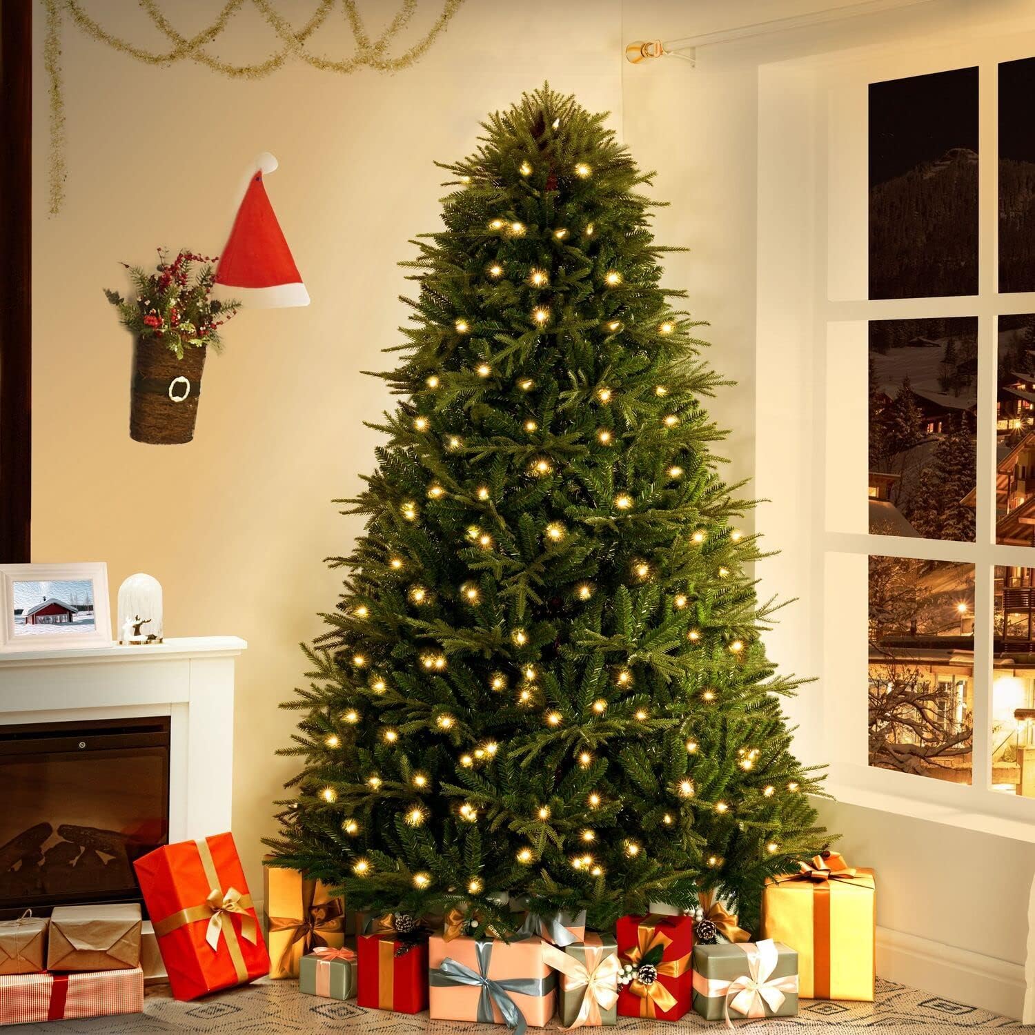 • WARM LIGHTS TO BRING MORE JOY : The Hinged fake Christmas Tree comes Pre-lit with 400 incandescent lights that make setting up your tree a breeze. These lights emit a warm glow that highlights your decorations and holiday gifts making your place extra-special. The included foot pedal allows easy control of the lights on the Christmas Tree. Naomi Home Christmas Trees with Lights always stand for trust and quality.