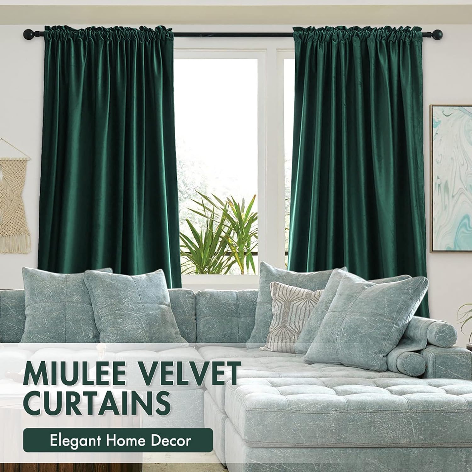 MIULEE Dark Green Velvet Curtains Thermal Insulated Blackout Curtain Christmas Emerald Green Drapes for Bedroom Living Room Darkening 96 Inches Long Curtains Panels Rod Pocket Set of 2