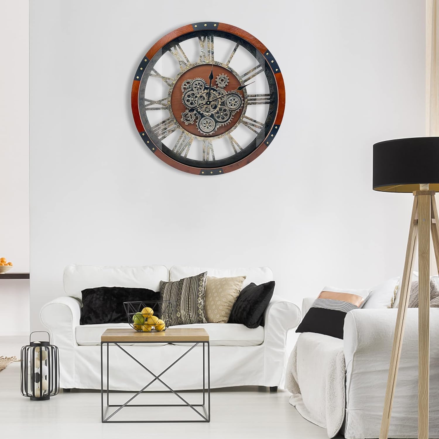 • Real Moving Gears Wall Clock: The large rustic wall clock is design with multi-real moving gears, put battery in, various gears start working, makes a subtle relaxing sound and makes a living element in the environment in where it is placed, vintage and magical, catch all eyes of visits