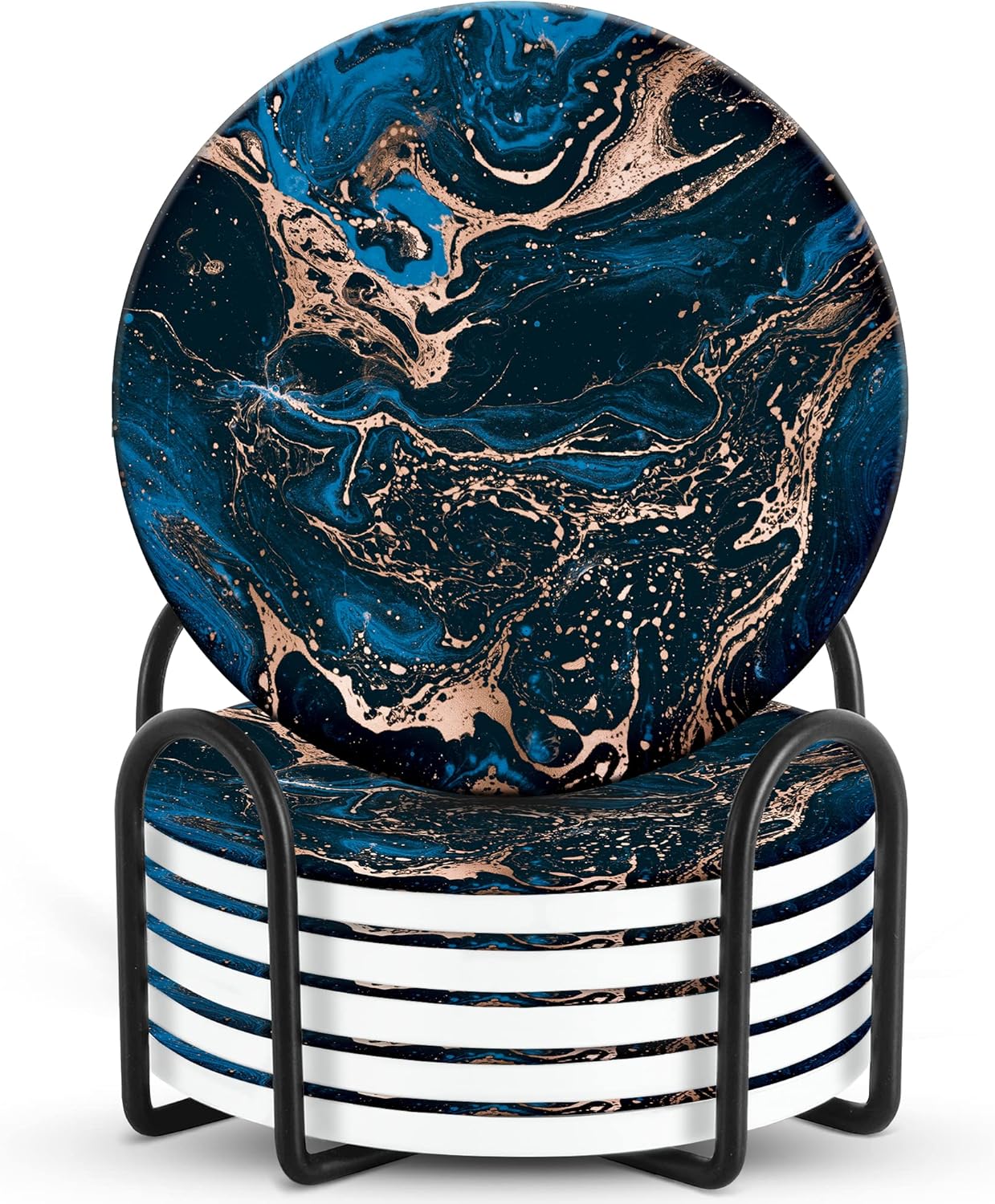 Emerson Coasters for Drinks Absorbent – Natural Stone Drink Coasters Set with Holder, Coasters for Coffee Table, Wooden Tabletop Protection Marble Style – 100% Heavy Duty Set of 6 (Royal)