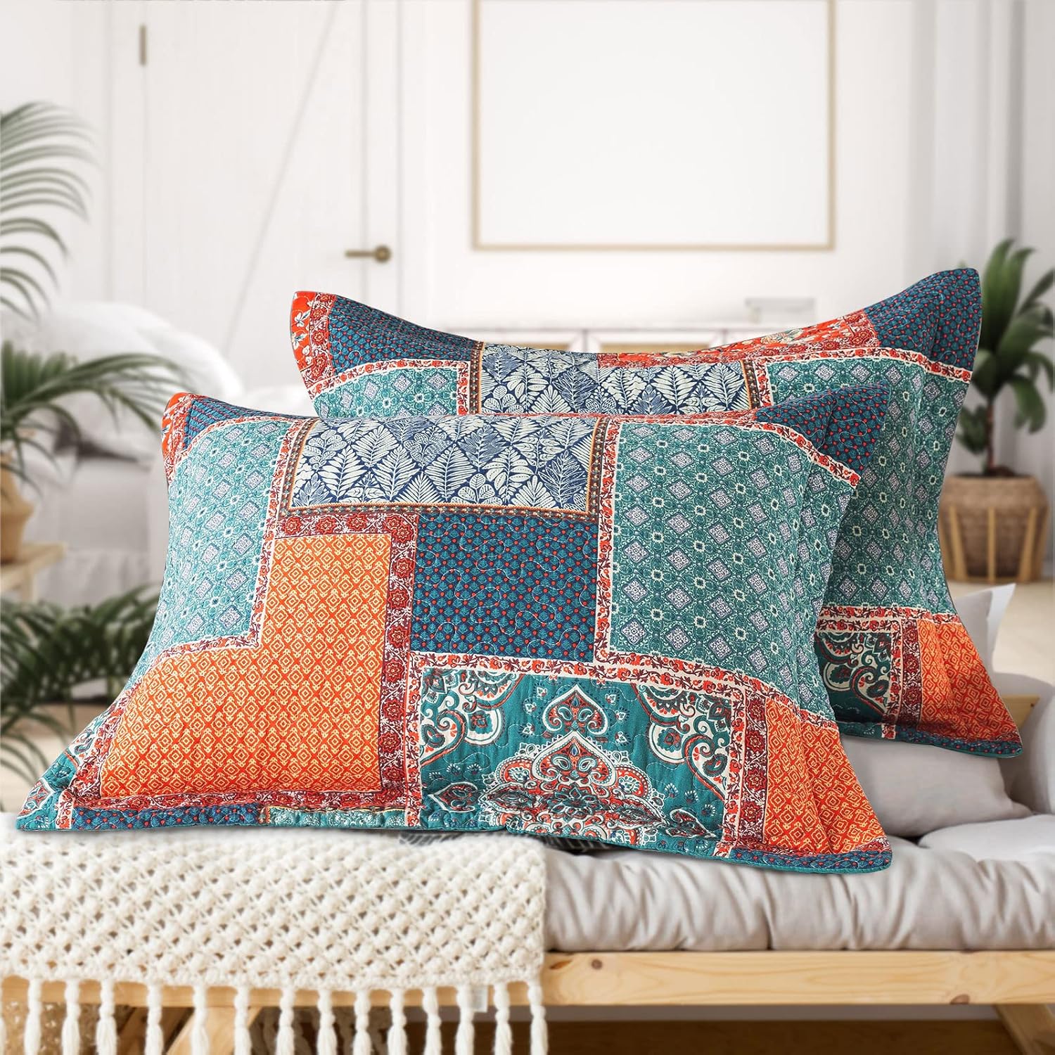 • 【Quilts Queen Size】1X queen size quilt (90* 98 inch) + 2X pillowcases (20* 27+ 2 inch) with colorful chic floral pattern. Bright colors and exquisite stitching improve your home decorations and cheer up a dull bedroom. Unique design makes you maintain the trend and have a unique personality at the same time.
