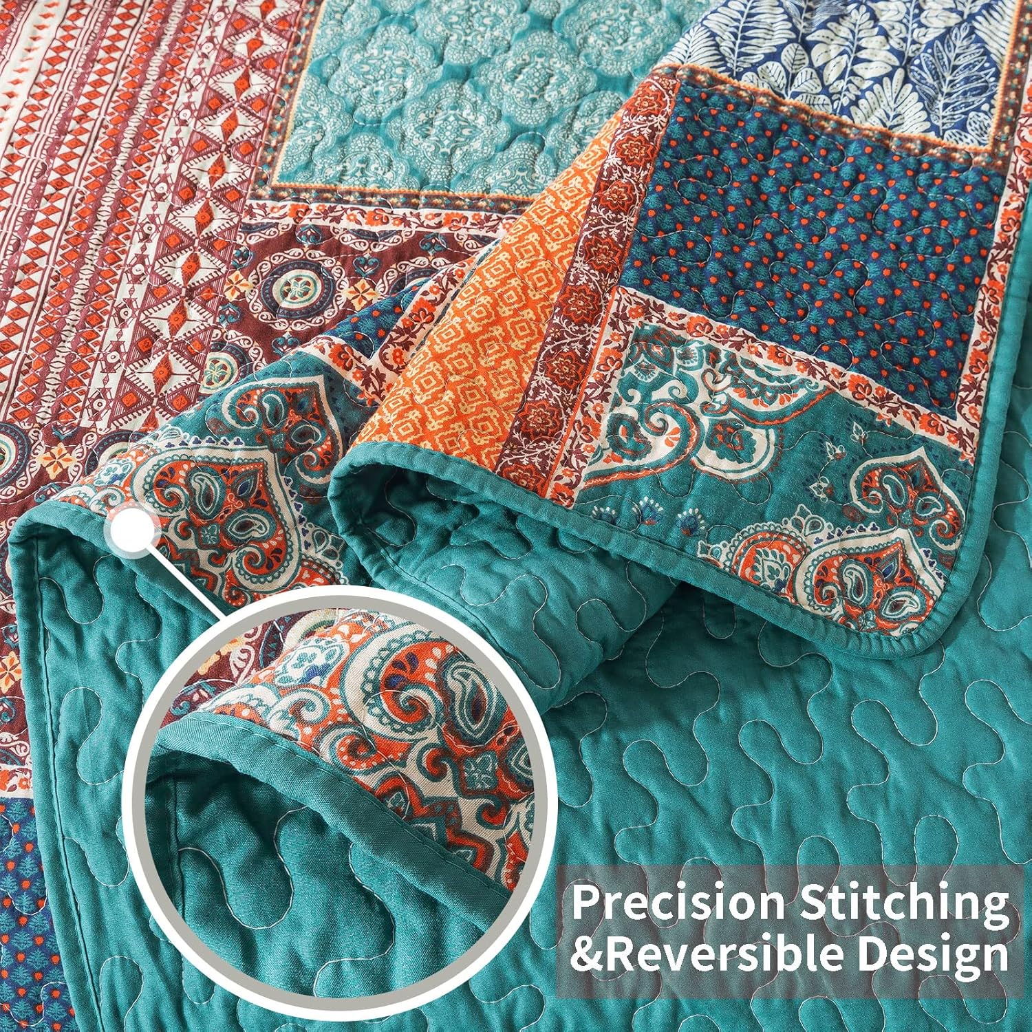 • 【Fine Handwork】Three layers of king quilt are stitched together by fine handwork. Meticulous handmade makes the cotton quilt king bedding sets extra firm and service life longer.