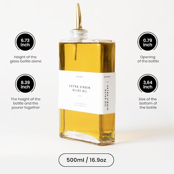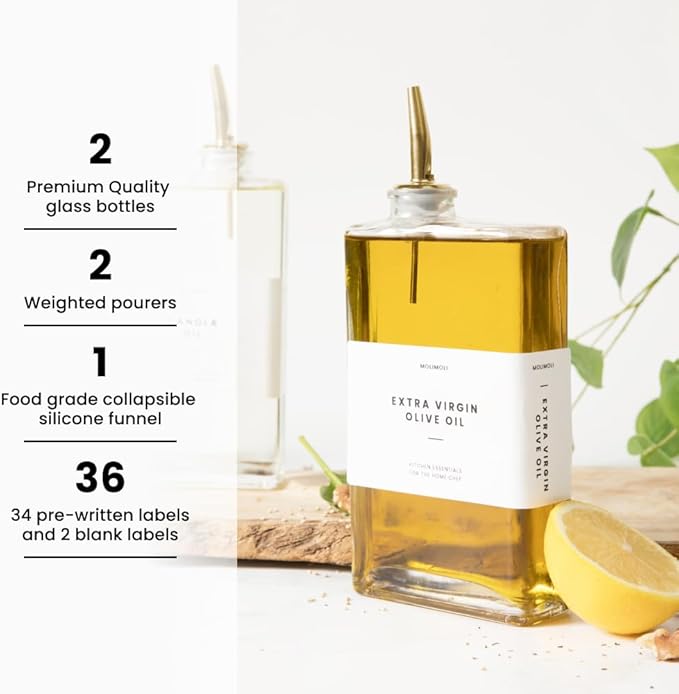 Molimoli Olive Oil Dispenser Bottle for Kitchen, Automatic Pourer, Glass Thin Bottle Dispenser for Kitchen, Olive Oil Cruet, | Set of 2 - Gold
