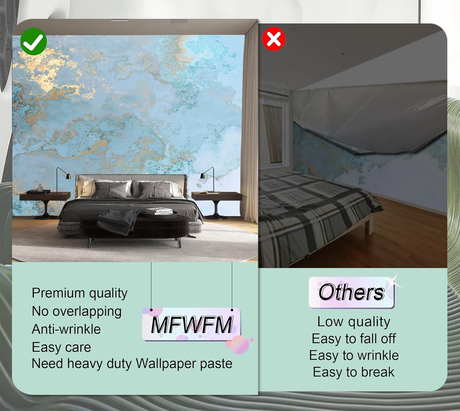 • Warming tips: Not peel and stick. Need to buy wallpaper paste by yourself. We recommend to use a standardized fleece wallpaper paste.