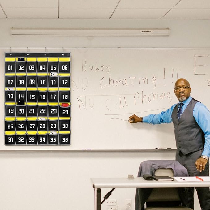 • 【Cell Phone Pocket Chart for Classroom】Used as classroom phone storage and calculator storage. Perfectly to hold students cell phone, calculators in class. Let students focus more on studying, say goodbye to students playing with their phones in class and create an efficient classroom.