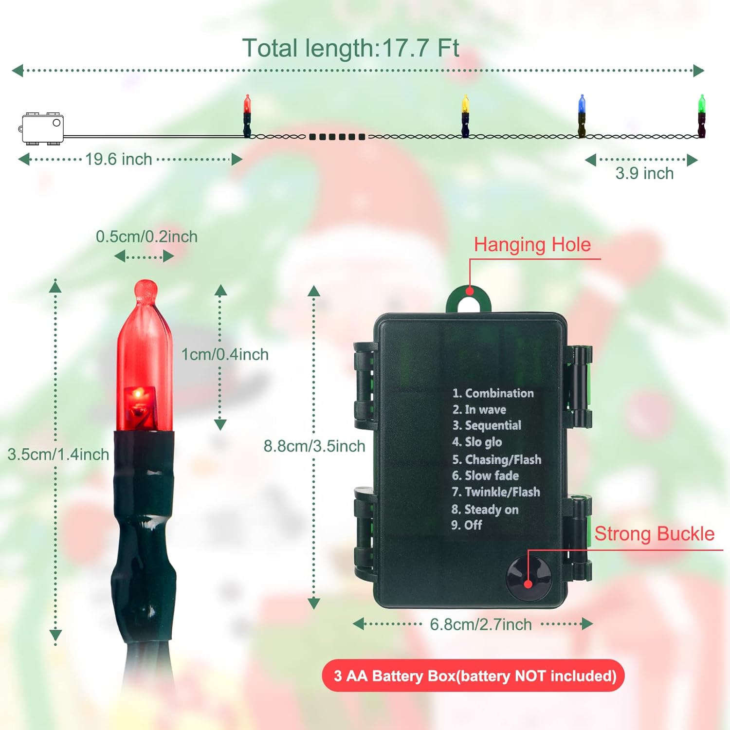 • Special Feature : 2Pack 50 LED Battery Operated Christmas Lights 17.7 FT, Multicolor Waterproof Mini String Lights with 8 Lighting Modes,Timer, Remote Control, for Tree, Christmas Decoration, Outdoor, Indoor 2Pack 50 LED Battery Operated Christmas Lights 17.7 FT, Multicolor Waterproof Mini String Lights with 8 Lighting Modes,Timer, Remote Control, for Tree, Christmas Decorati… See more