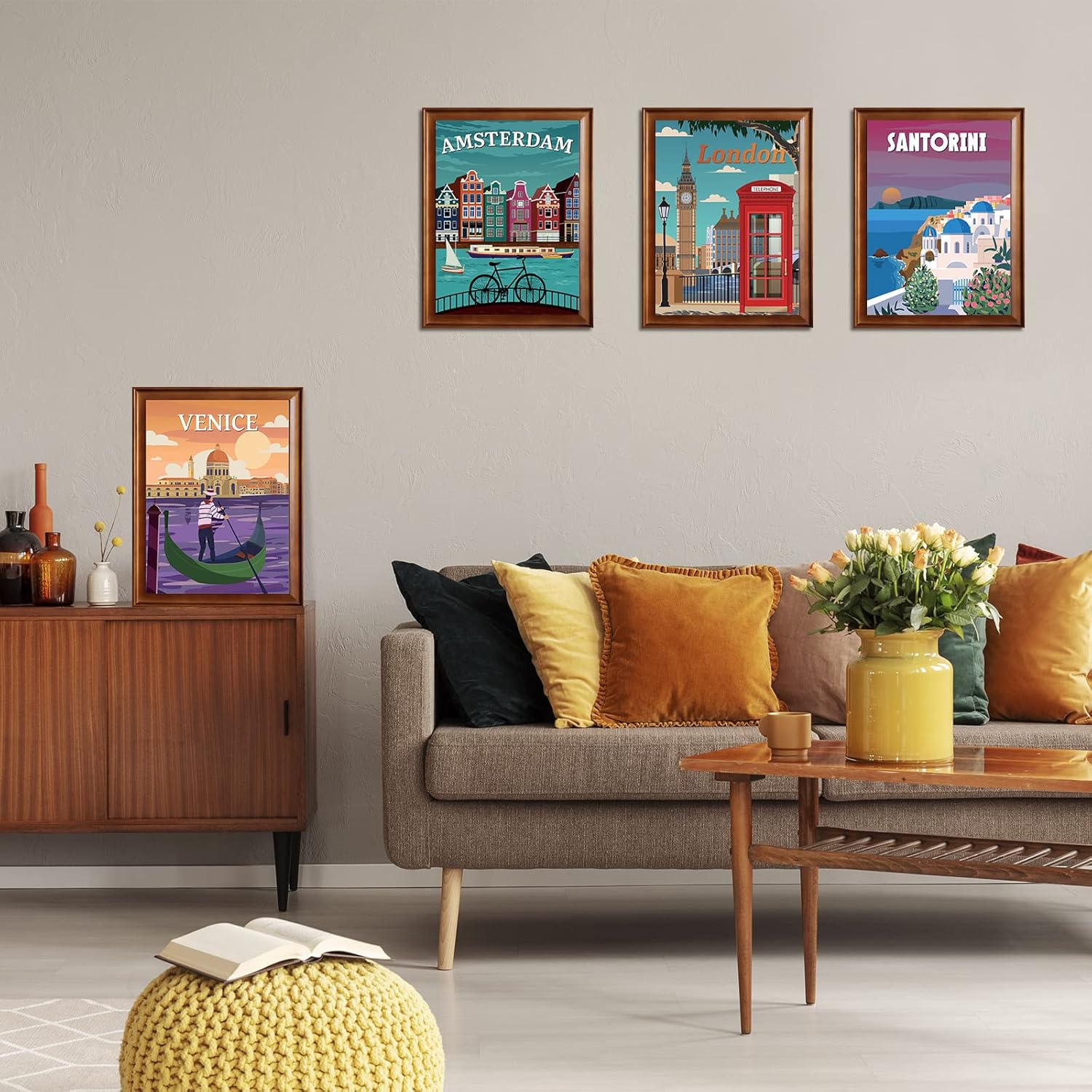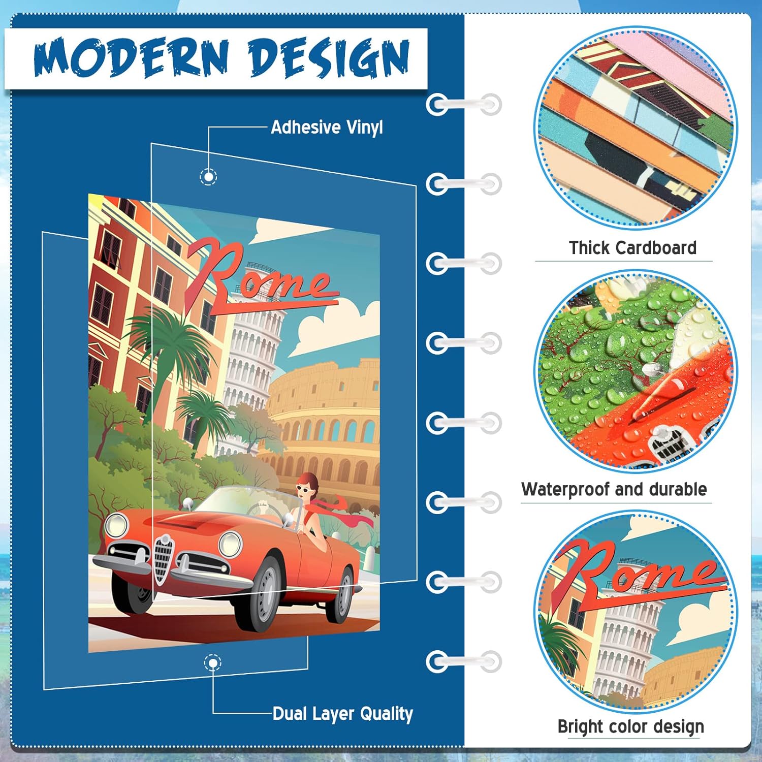 • Package Includes: these vintage travel city posters are unframed and have 9 assorted styles, and equipped with 2 sheets (40 pieces) adhesive dots, enough quantity for you to decorate your room, our travel wall art set provides make a nice housewarming gift for a new house, a refreshed apartment or a freshly decorated dorm, these travel city paintings are delicate posters for the room and nicely set the tone of your room