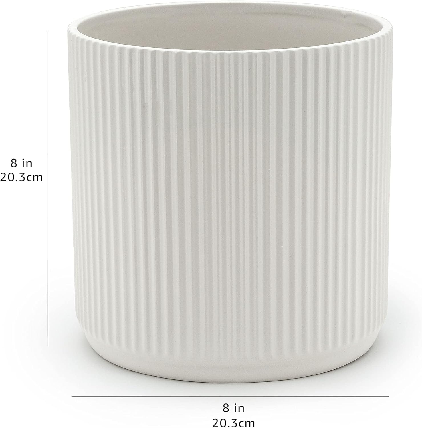Amazon Basics Fluted Ceramic Round Planter, 8-inch, White
