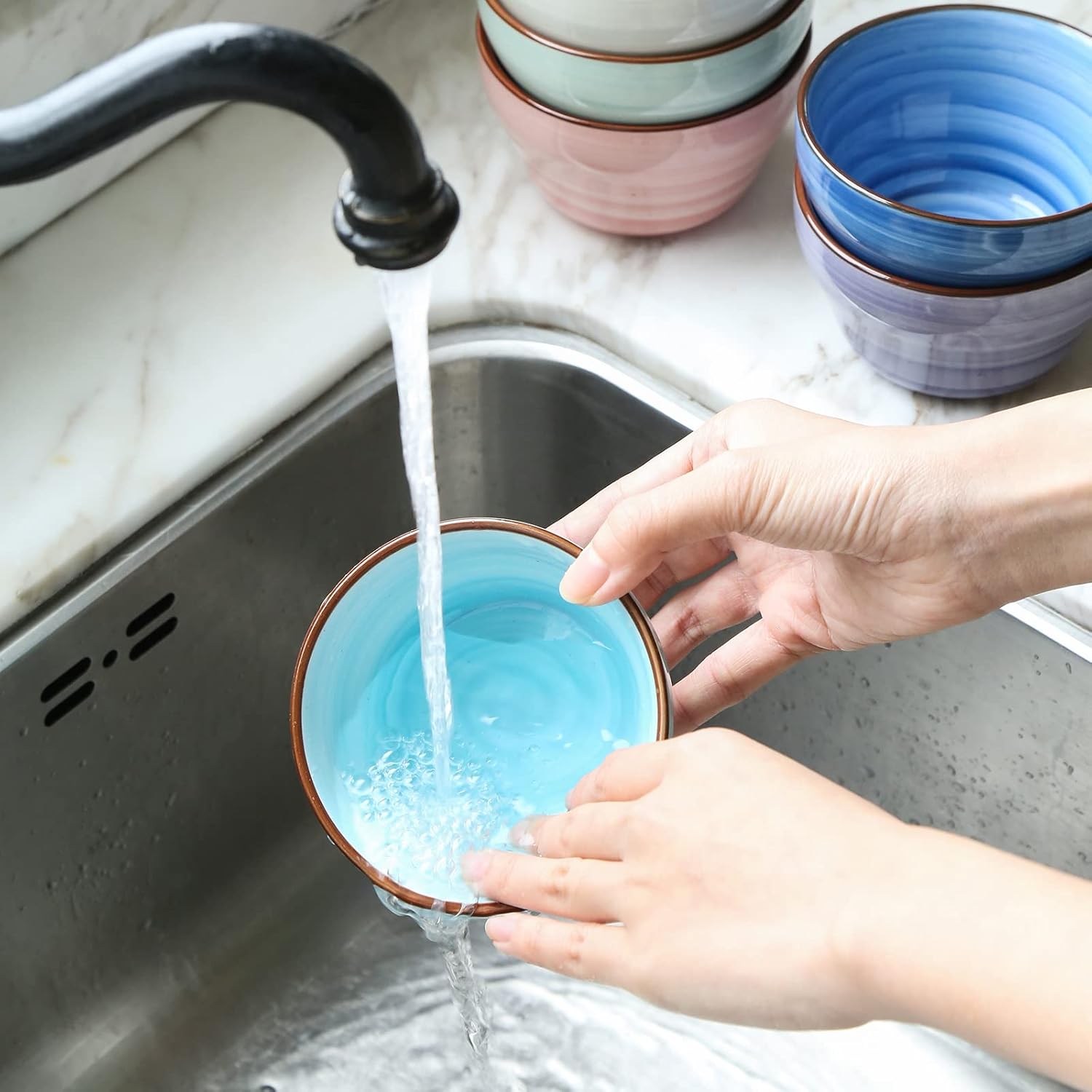 • SWIRL PATTERNS & BLACK SPOTS DESIGN - The exquisite hand-painted gradient patterns paired with black spots bring you a stylish and concise feeling. Dress up your meals and snacks with these unique, colorful bowls. They will brighten up your table at mealtime and add a touch of brilliant color to life.