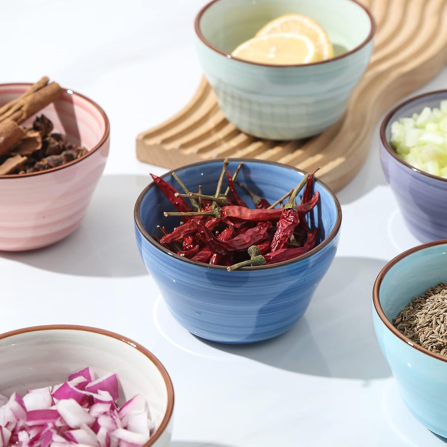 • HEALTHY AND STURDY PORCELAIN - These snack bowls are made of some strong stuff. They are proudly quality-approved stoneware that have no harmful lead or cadmium. The superior durability and edge strength will ensure years of use.