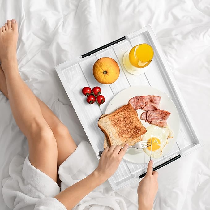 • MULTIPURPOSE SERVING TRAY – Use this versatile large wood serving tray in the comfort of your bedroom, study, or Couch Tray or Farmhouse tray or anywhere you like to enjoy a nice meal! Our kitchen wooden serving tray can also be used as a kitchen organizer to hold cutlery or other items, as a remote tray, a laptop tray for bed while working from home, or as a coffee tray for coffee bar