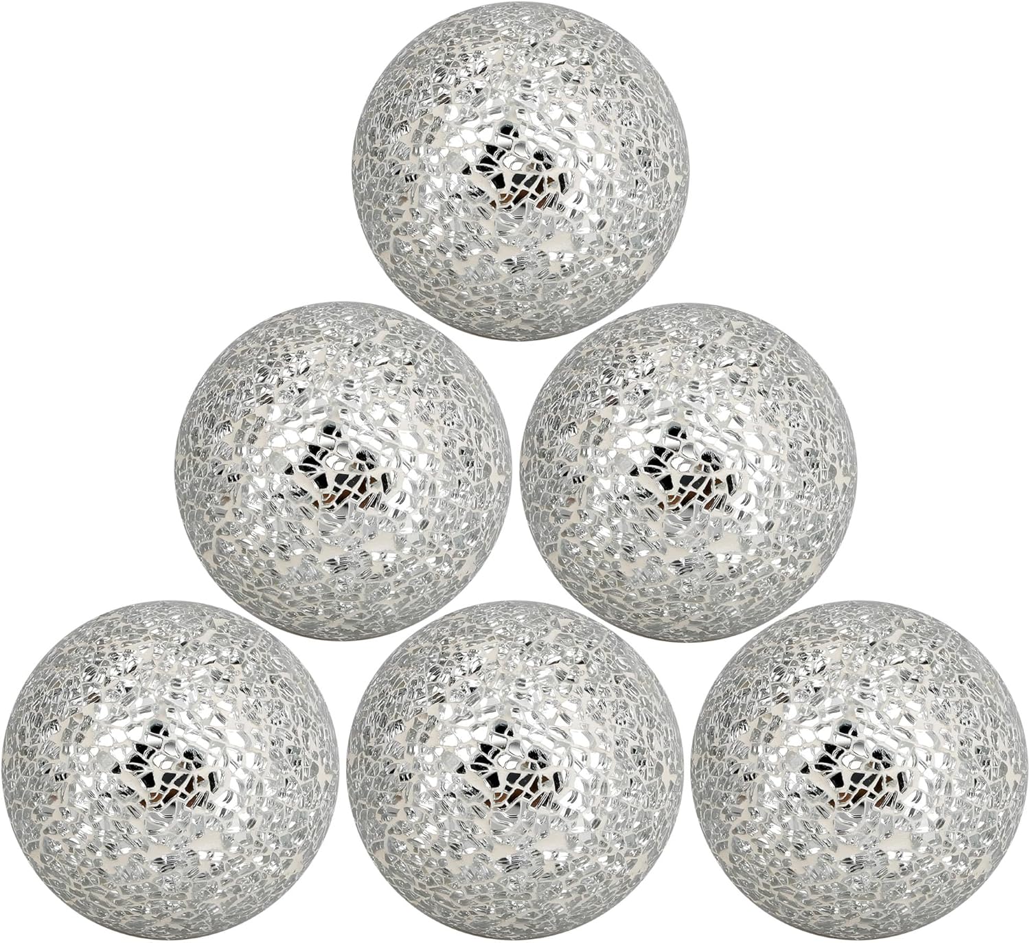 6pcs Decorative Balls for Centerpiece Bowls - 8cm/3.15in Silver Mosaic Glass Orbs Decoration Ball Mirror Glass Ball Fillers for Bowl Tables Wedding Party