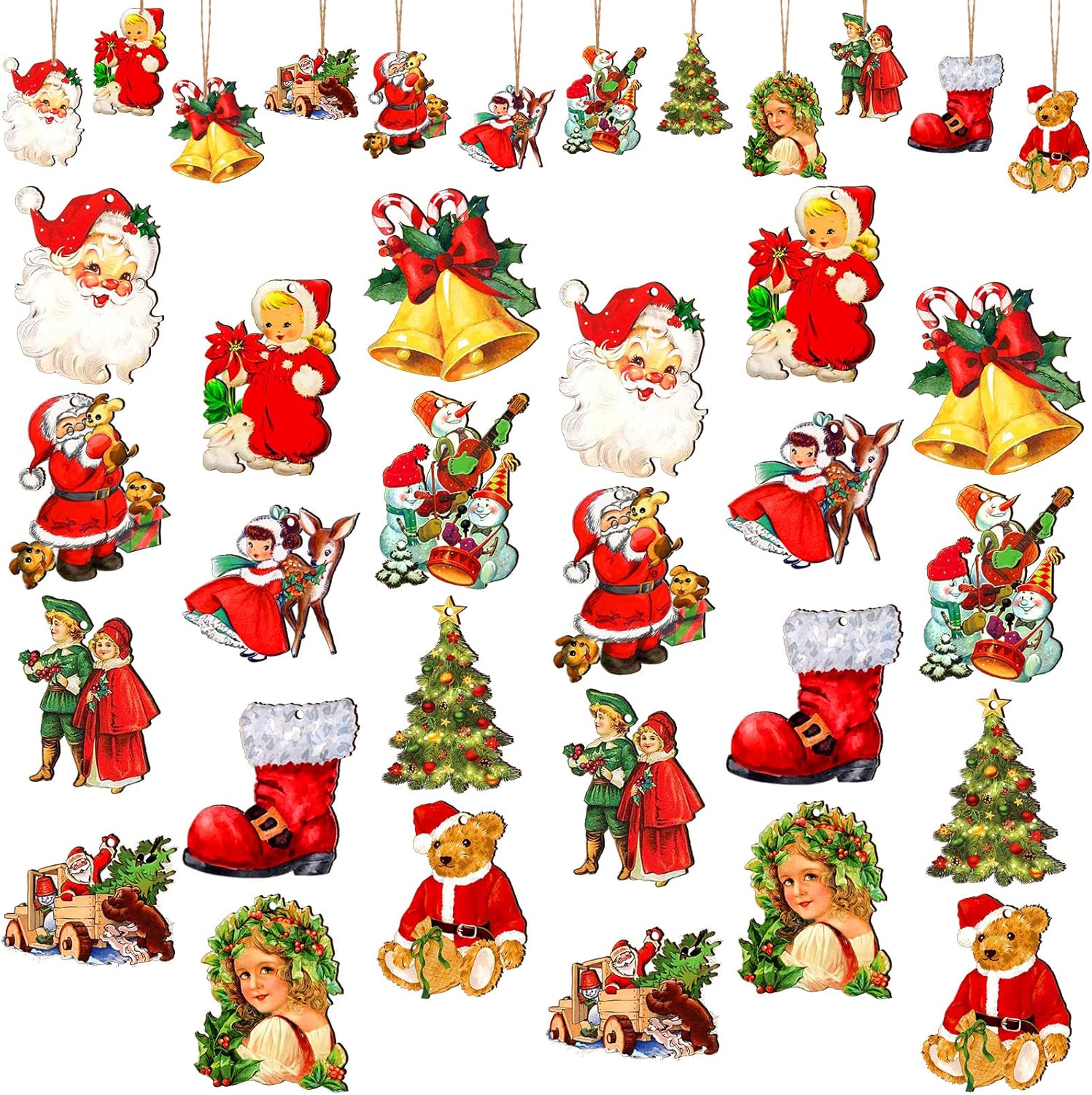 • Reliable Material and Clear Printing: these retro Christmas ornaments are made of wood material with bright color printing, sturdy in construction and smooth in surface, not easy to fade or break, lightweight and reusable, can be applied for a long time; These vintage Christmas tree decorations are approx. 3.15 inch/ 8 cm high and predrilled with holes, so you can cut the rope into a proper length and pass through the hole for easy hanging