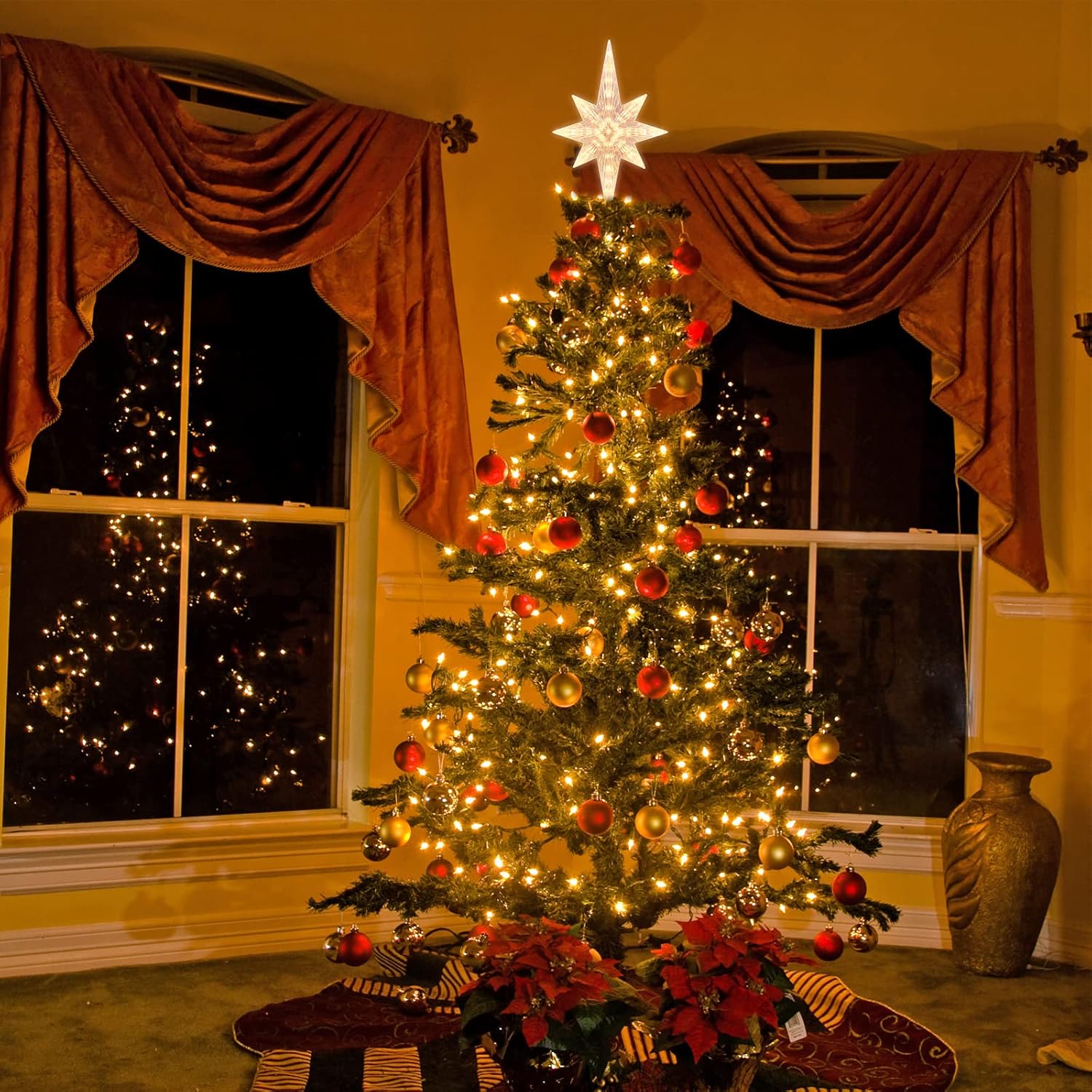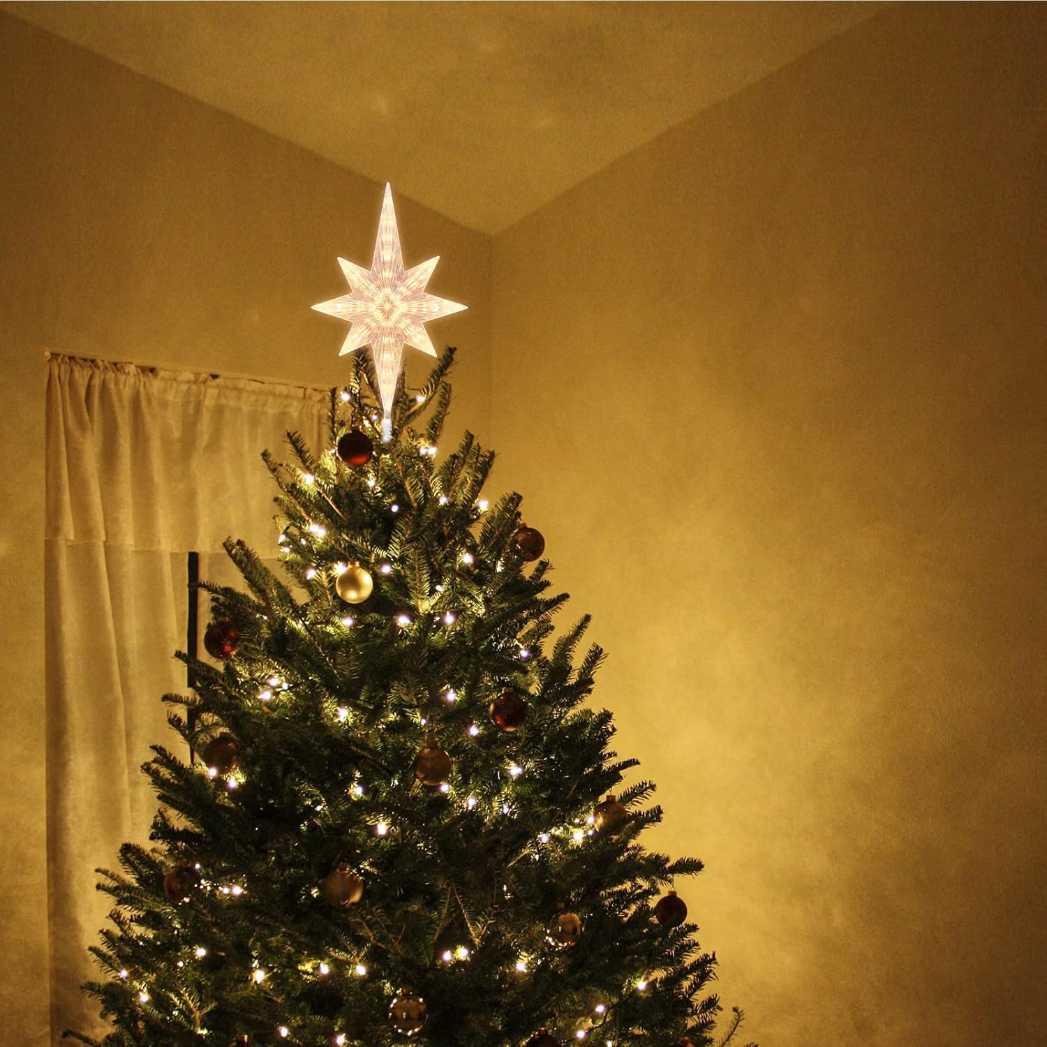 • This Bethlehem Star tree topper is designed with warm white light, will bring you a warm and comfortable atmosphere. You and your families will be very relax and enjoy the evening.