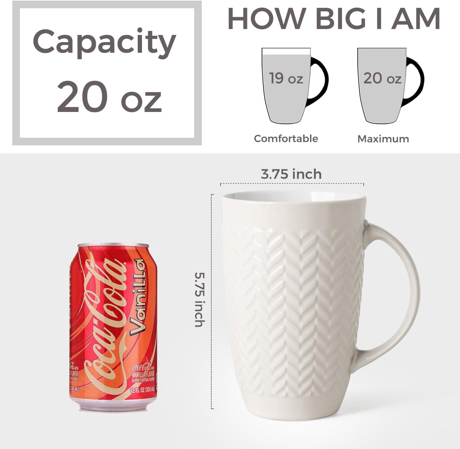 • 20OZ &VERSATILE: These large capacity coffee mug is perfect for daily use at home or in the office. With its big size, you can enjoy a normal cup of beverage without worrying about spills. This mug is not just for coffee - it's also great for tea, soup, beer, cocoa, and more