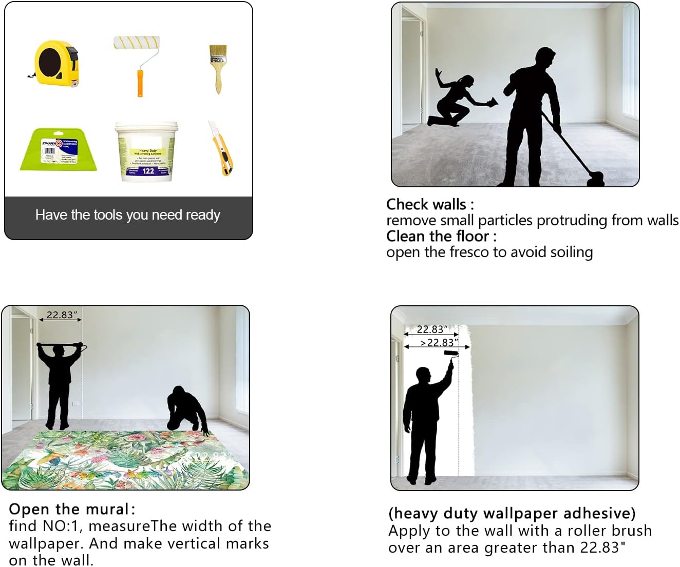 • This mural is It's not Peel and Stick . Additional Purchase required ( thick wallpaper adhesive ) please Check if is the product you need . thanks.