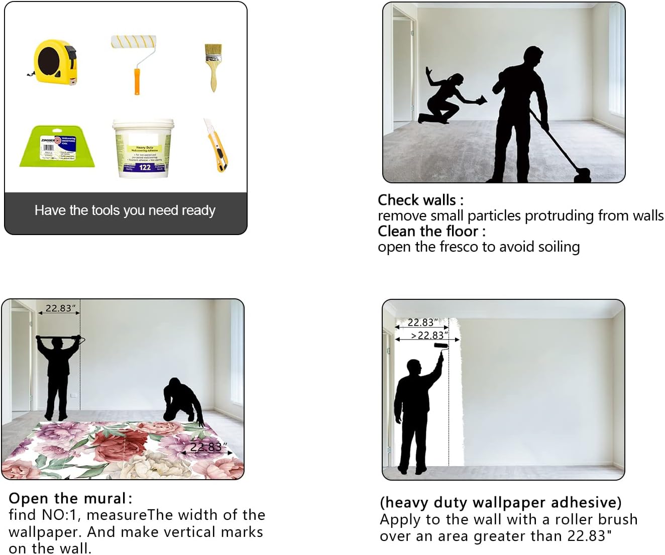 • This mural is It's not Peel and Stick . Additional Purchase required ( thick wallpaper adhesive ) please Check if is the product you need . thanks.