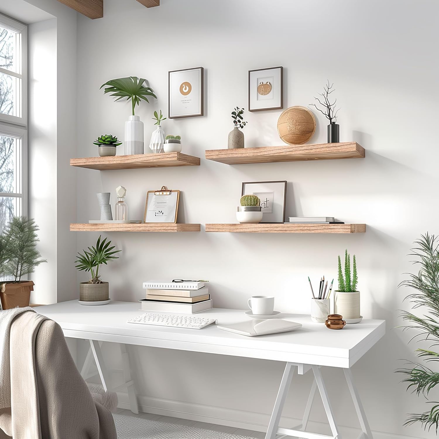 • Sturdy and Easy to Setup Floating Shelves - With durable hardware and metal brackets, the floating shelves has 20lbs high Weighing capacity. With the detailed directions and all hardware, it only takes 8 minutes to install the wall shelves.