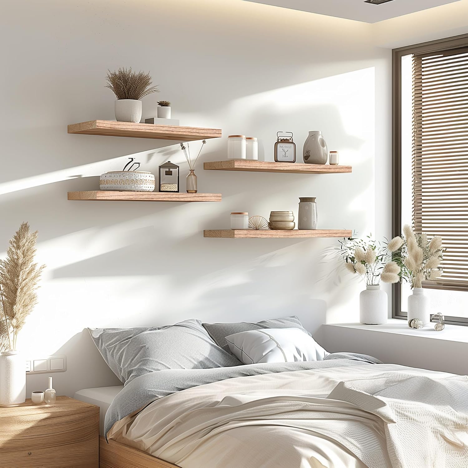 • Home decor and storage shelves - This wall shelves are the perfect piece for any rustic, modern, or natural home decor. They allow to better organize spaces, helping you conveniently store everything from alarm clocks, books, pictures to potted plants.