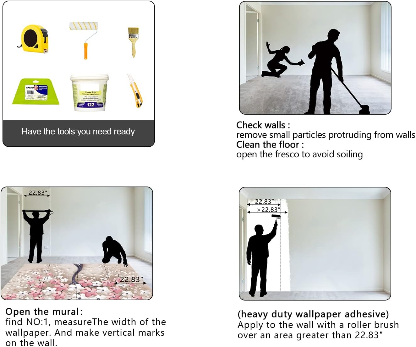 • It's easy to install: at the bottom of each mural we have a numbered sequence, You can refer to the instructions we provided and the main picture 6-7,just match the numbers and you'll be amazed!