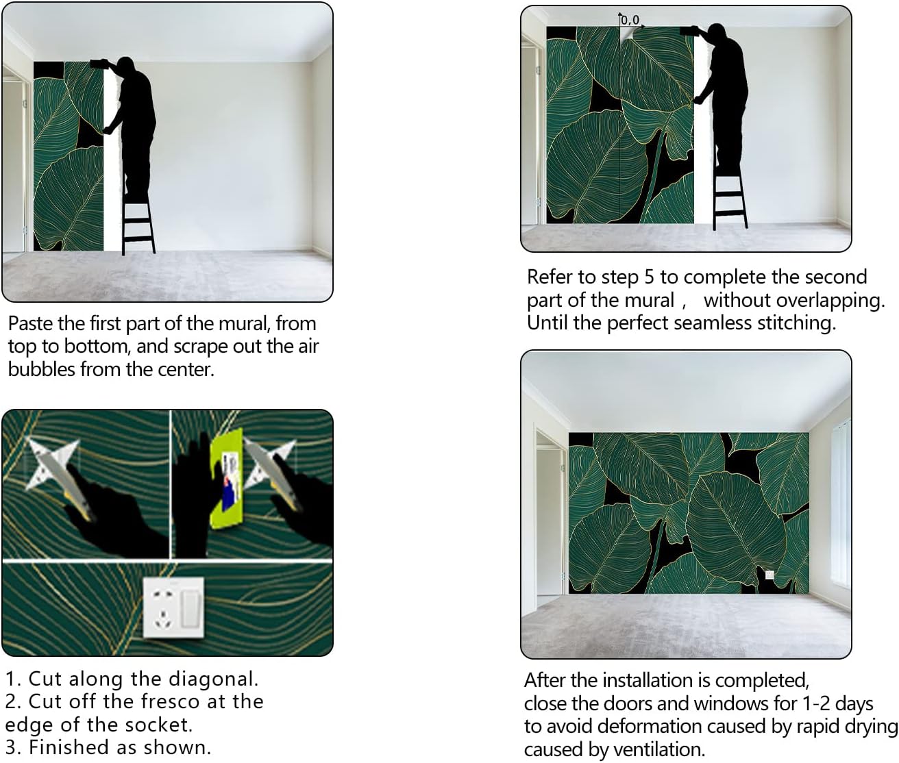 • It's easy to install: at the bottom of each mural we have a numbered sequence, You can refer to the instructions we provided and the main picture 6-7,just match the numbers and you'll be amazed!