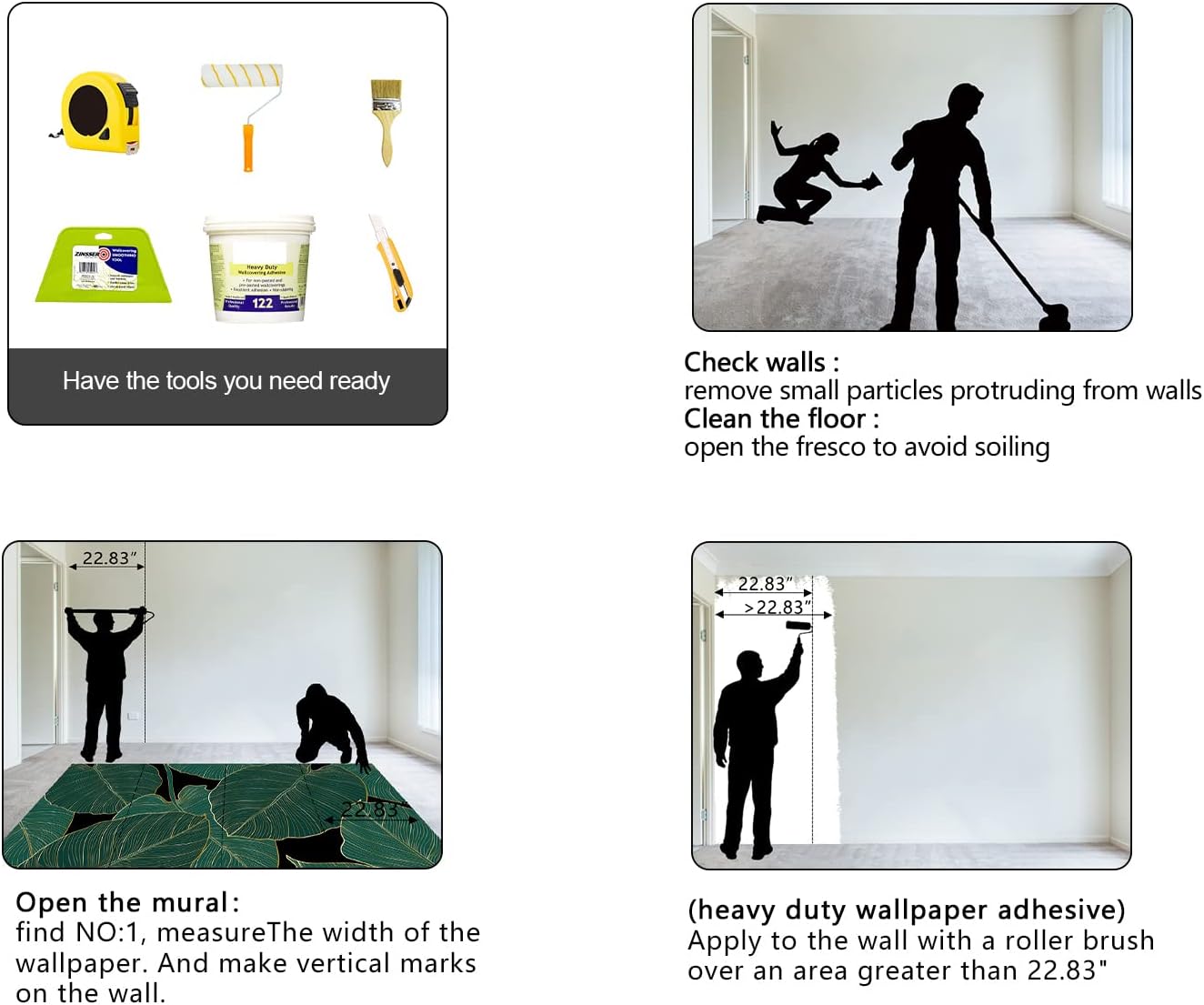 • This mural is It's not Peel and Stick . Additional Purchase required ( thick wallpaper adhesive ) please Check if is the product you need . thanks.