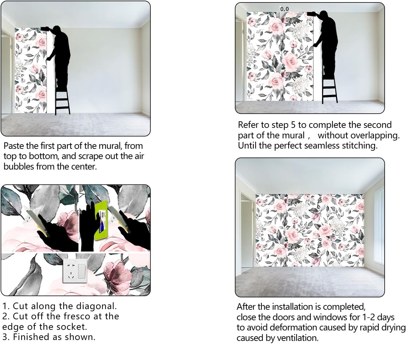 • It's easy to install: at the bottom of each mural we have a numbered sequence, You can refer to the instructions we provided and the main picture 6-7,just match the numbers and you'll be amazed!