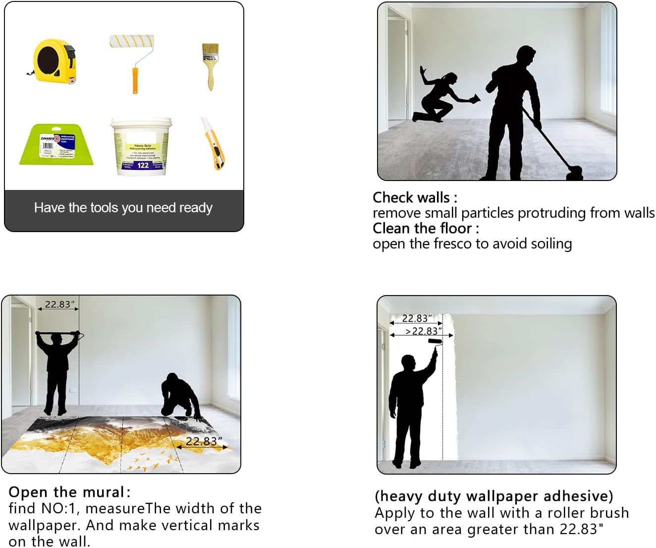 • This mural is It's not Peel and Stick . Additional Purchase required ( thick wallpaper adhesive ) please Check if is the product you need . thanks.