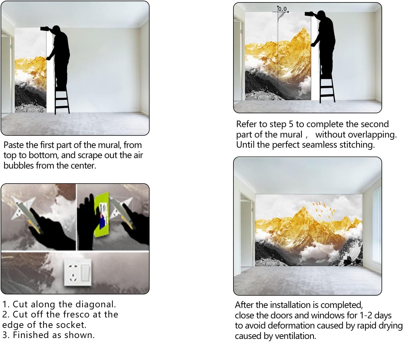• It's easy to install: at the bottom of each mural we have a numbered sequence, You can refer to the instructions we provided and the main picture 6-7,just match the numbers and you'll be amazed!