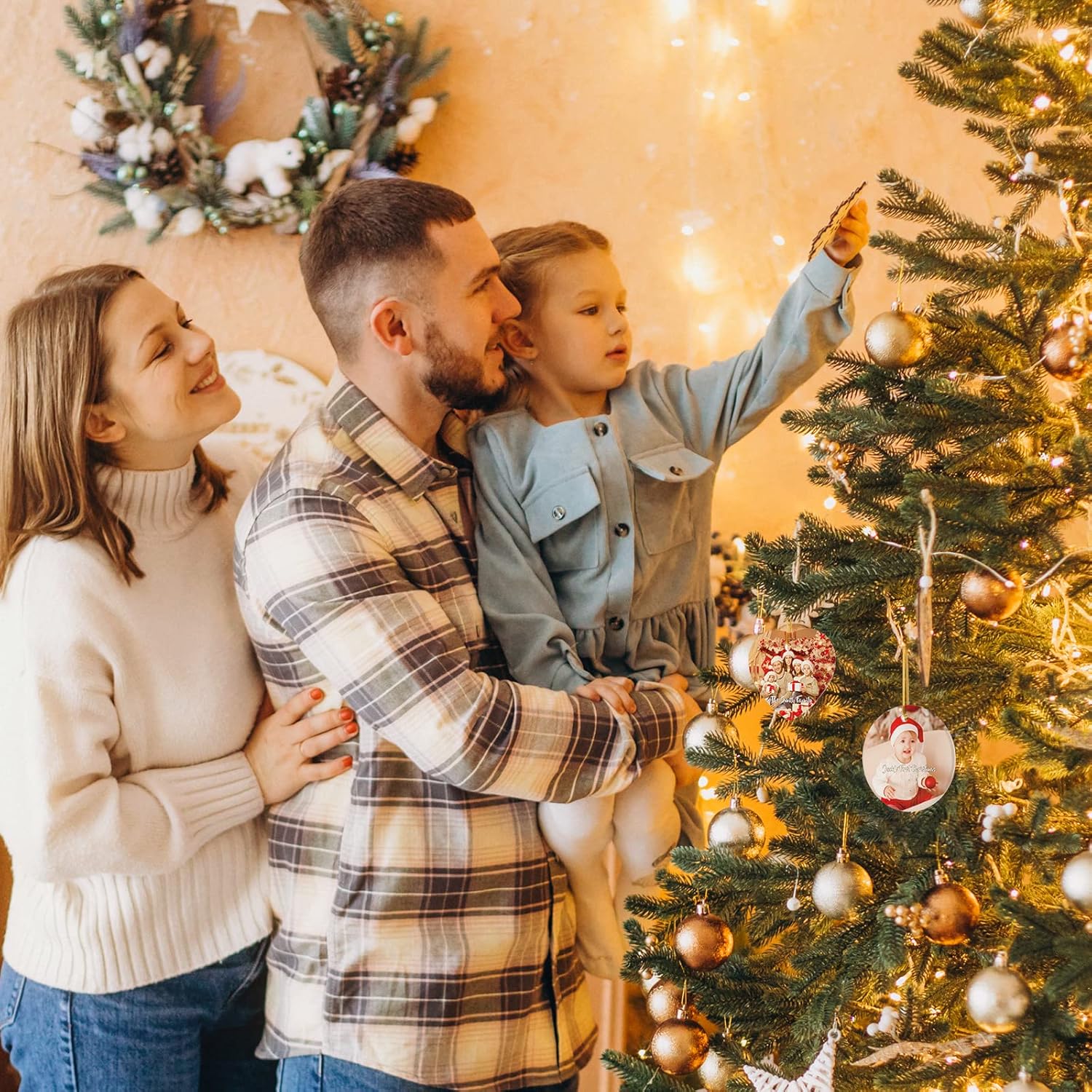 • PERFECT CHRISTMAS DECORATION - This beautiful handcrafted personalized Christmas decoration is a perfect way to hang on your Christmas tree. Gold hanging cord included, the best decoration for Christmas trees, doors, windows, walls & anywhere you want to decorate.