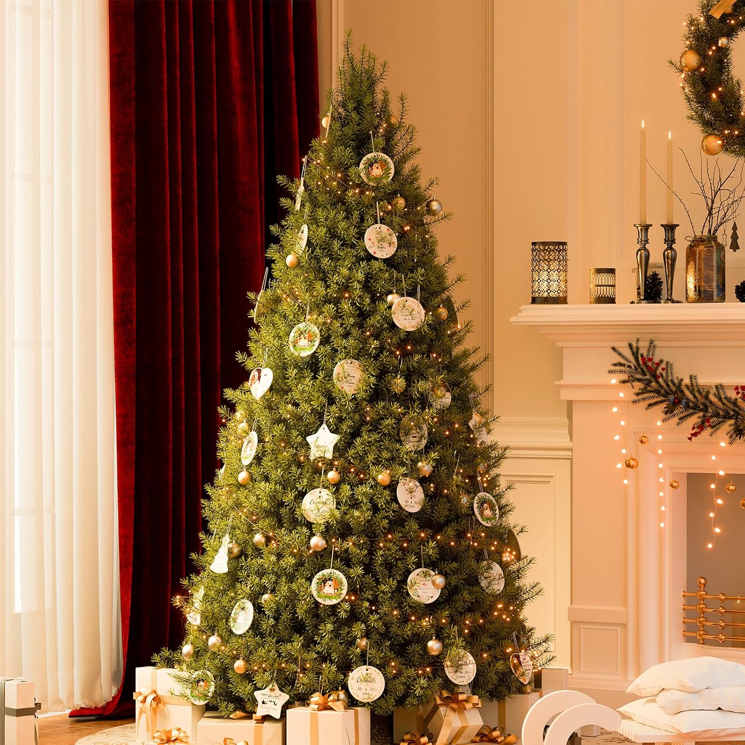 • ❤️ High-Quality Ceramic Material ❤️ The personalized ornaments are made of premium ceramic, measuring approximately 3 inches—easy to carry or give gift. Compared to wooden ornaments, ceramic offers clearer, more high-definition printing and a luxurious look. The bright, fade-resistant colors preserve your memories vividly, allowing you to cherish this picture ornaments for christmas tree for years to come