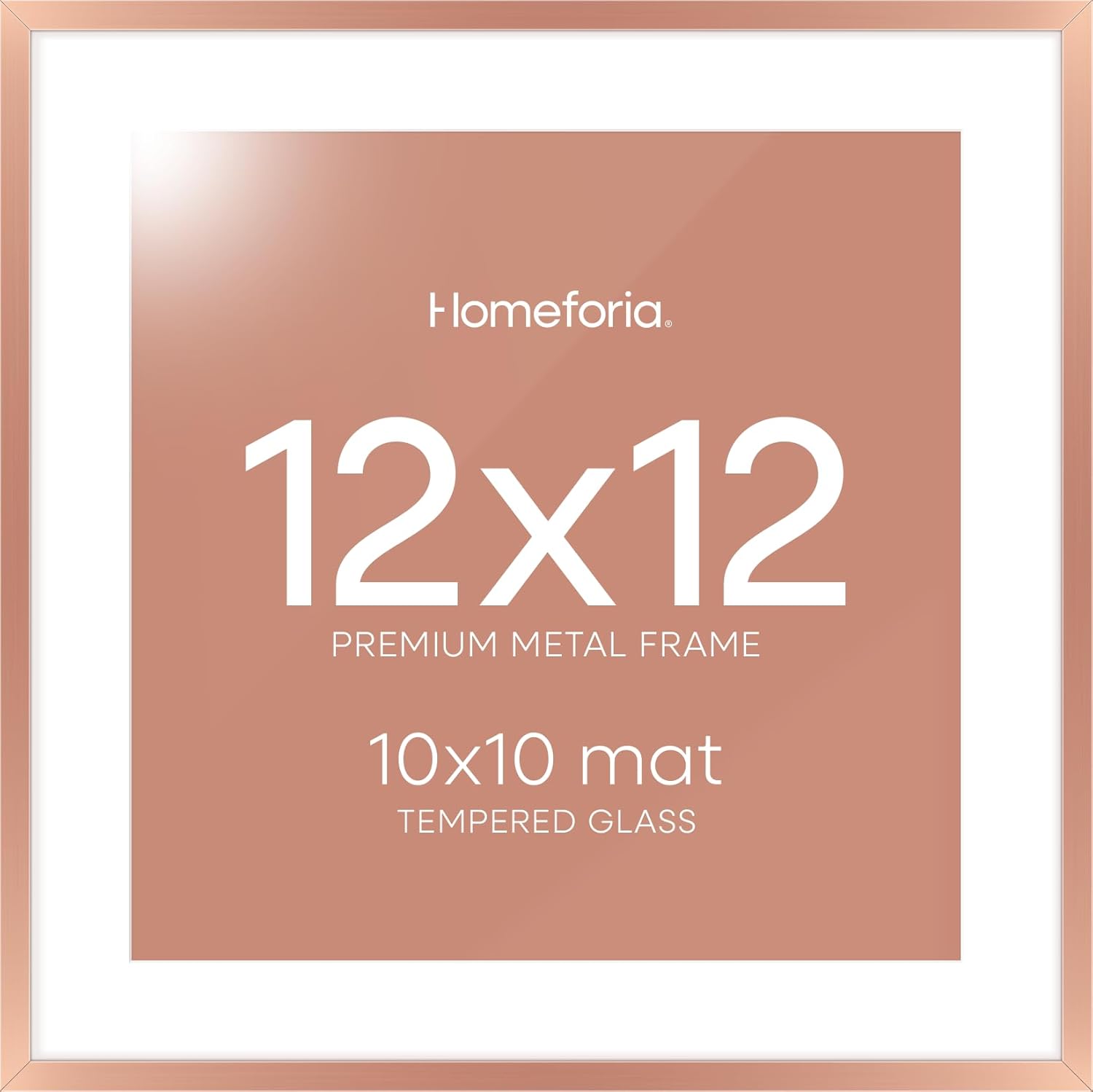 Homeforia 12x12 Picture Frame Rose Gold, High End Metal 12 x 12 Square Poster Frame with Mat 10 x 10 Photo, 12x12 Frame Matted to 10x10 Print, 12by12 Hanging Frames, Tempered Glass, Wall Kit, Set of 1