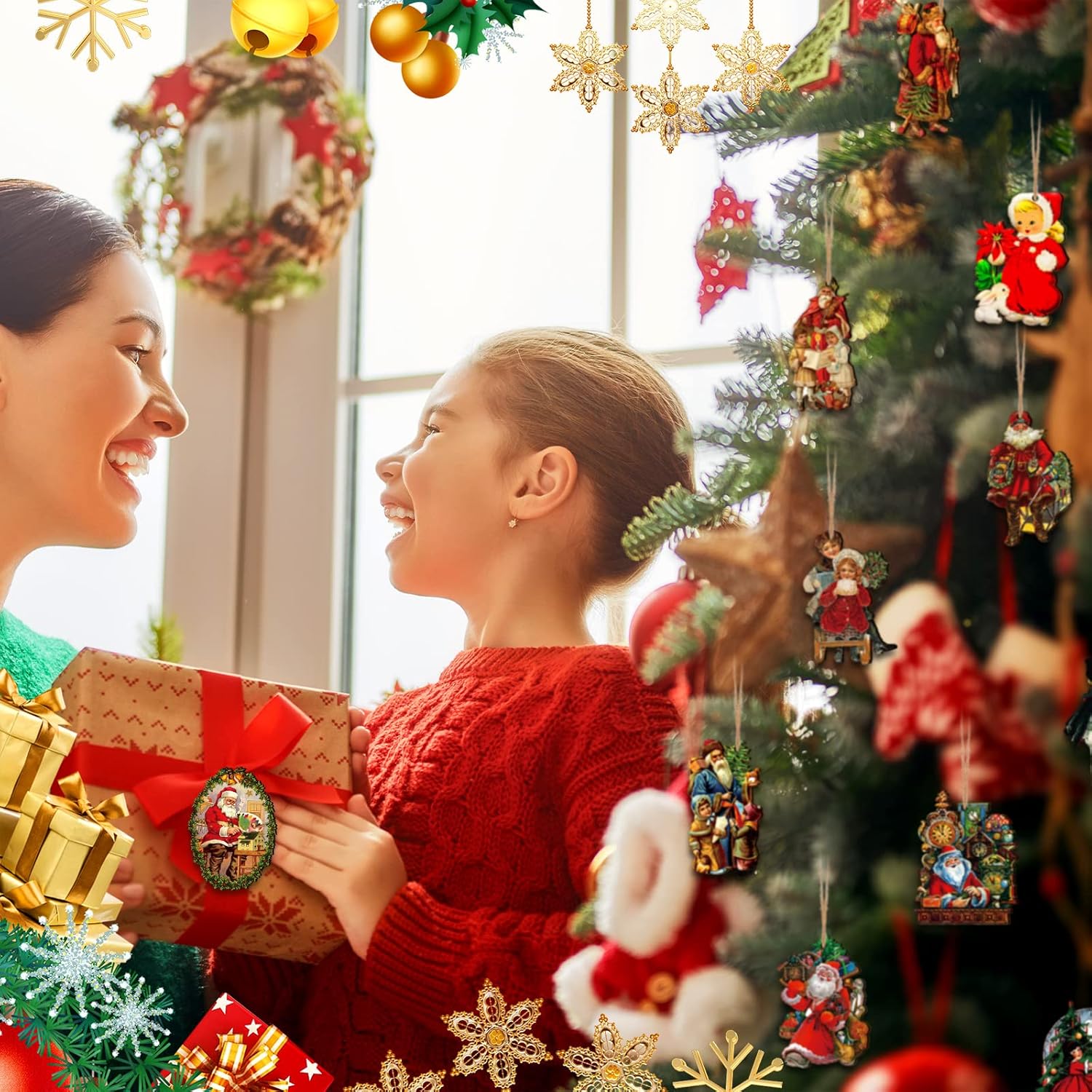 48 Pcs Vintage Wood Ornaments - Victorian Style Santa Claus, Snowman & Retro Decor for Christmas Trees