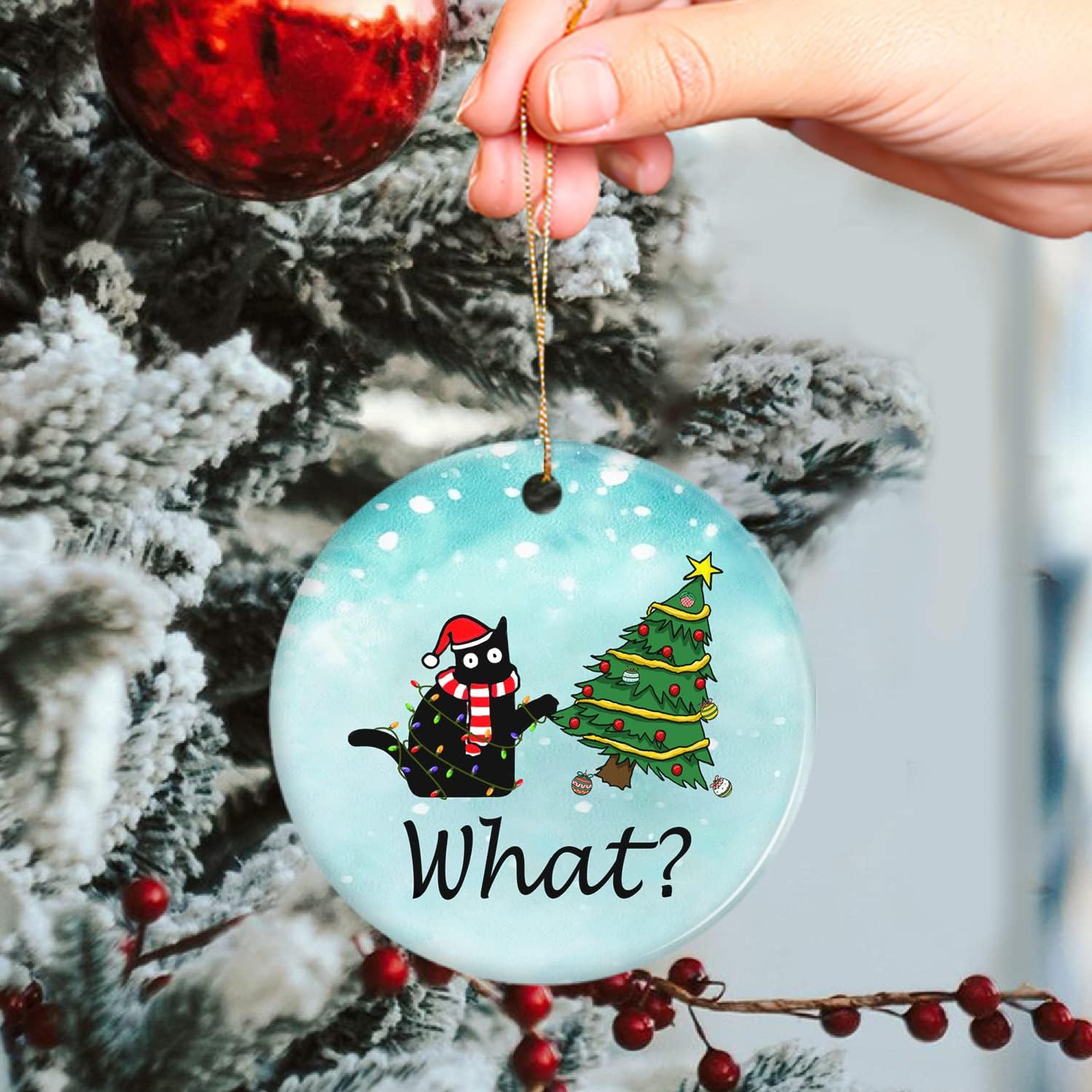OASSIE Funny Black Cat Gifts for Women Men - Ceramic Christmas Ornaments 2025 for Tree Decorations - Christmas Cat Lover Gifts for Women Animal Lovers, Funny Ornaments, White Elephant Gift Ideas