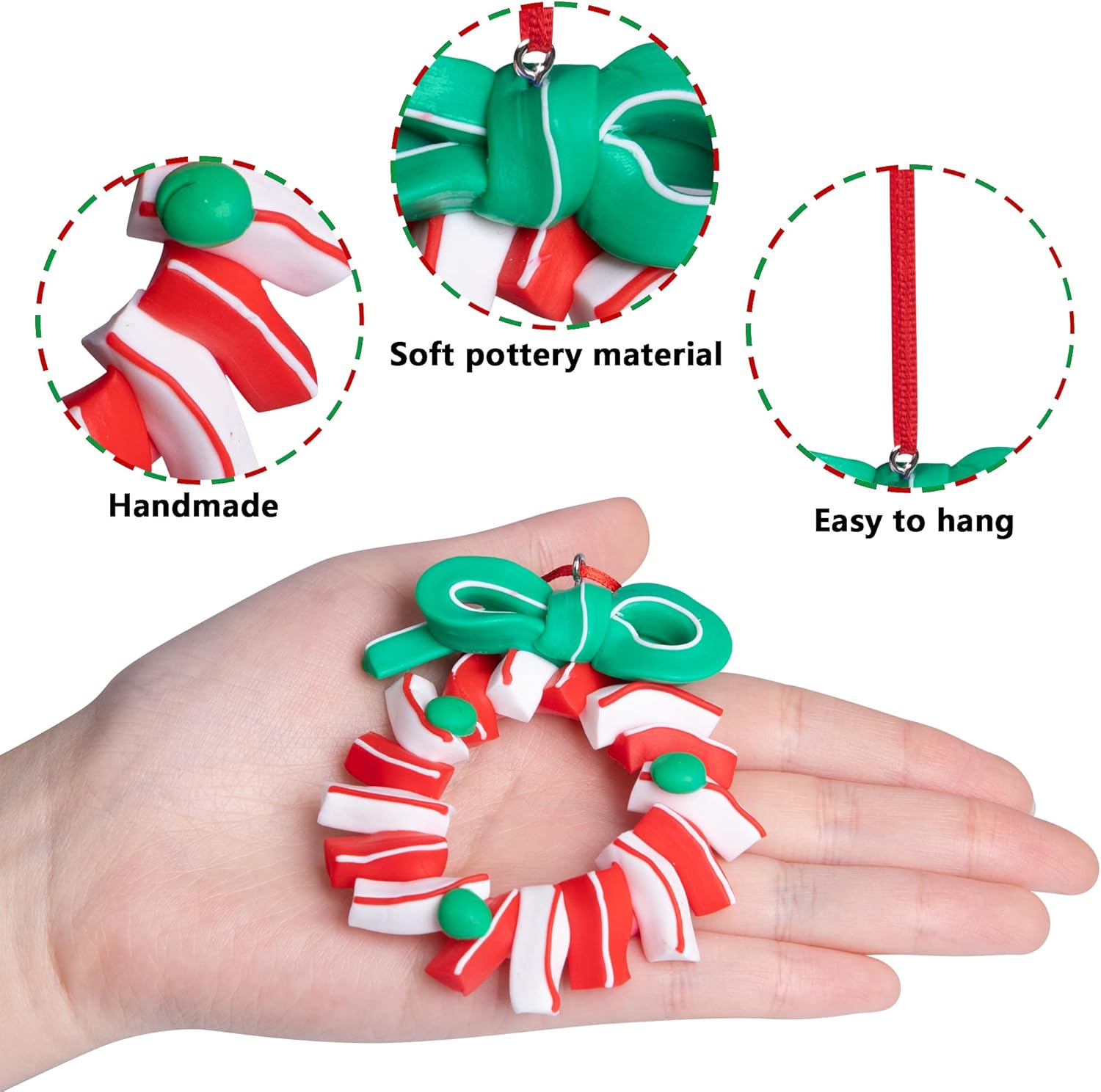 • Easy to hang:Every Christmas lollipop polymer clay ornament is equipped with a red ribbon,light weight, you can easily hang them where you want to decorate.Bring you a different visual experience.