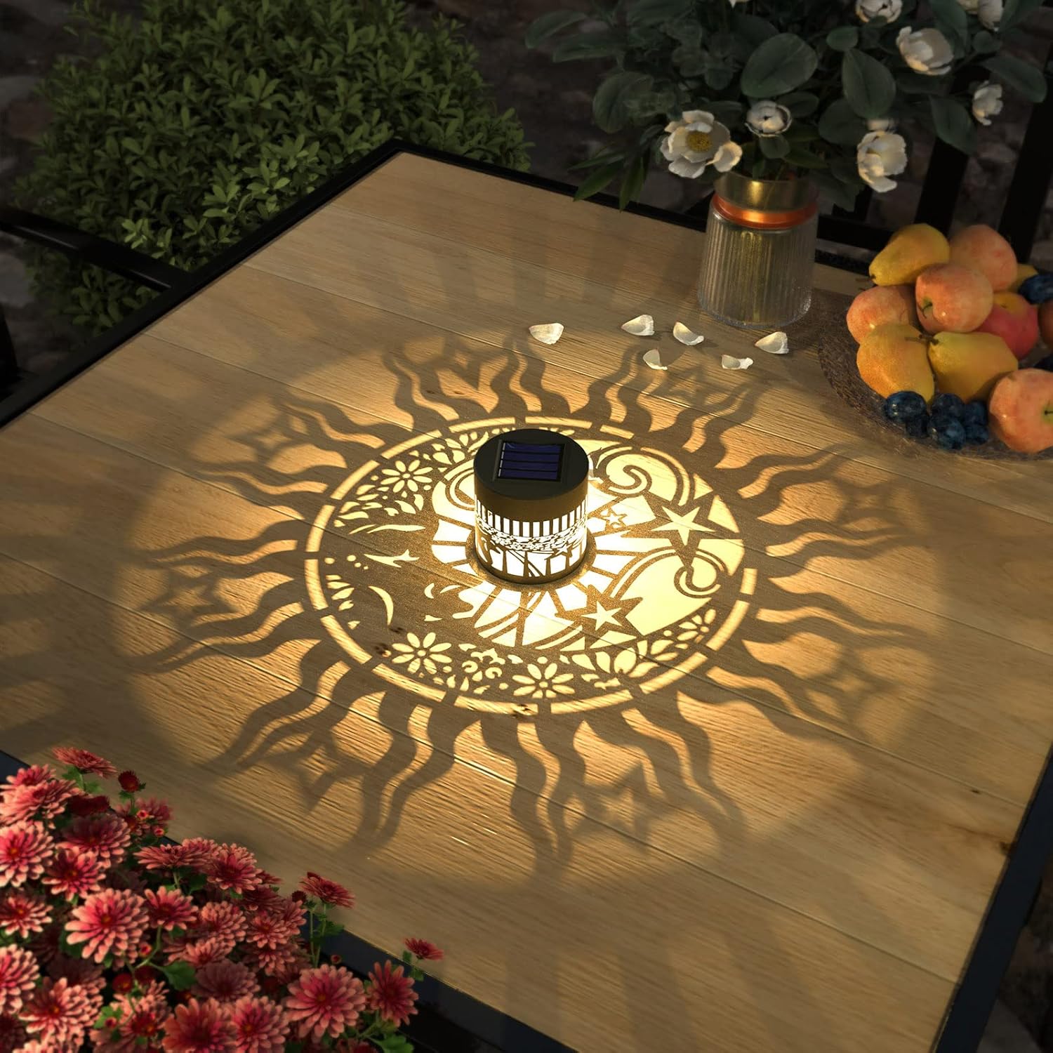 • Good Decoration: 10 lumens of warm yellow light. The small fence solar lights can project a unique and beautiful lotus pattern. In a dim environment, the solar lights can illuminate a corner of the fence or the wall and create a beautiful and warm atmosphere. They are very suitable as holiday decorations and gifts for relatives and friends