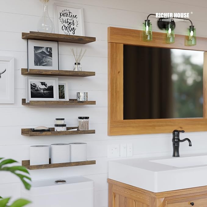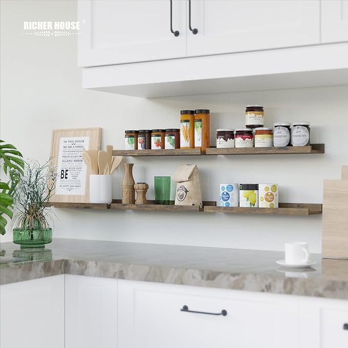 • Wide Application - These wooden floating shelves creates multi-functional storage space and various combinations to decorate your home. It can be spice racks to expand kitchen storage or bathroom shelves to add over-the-toilet-storage space for bathroom accessories or display shelves to show your plants, records, magazines, and trophy in the living room.