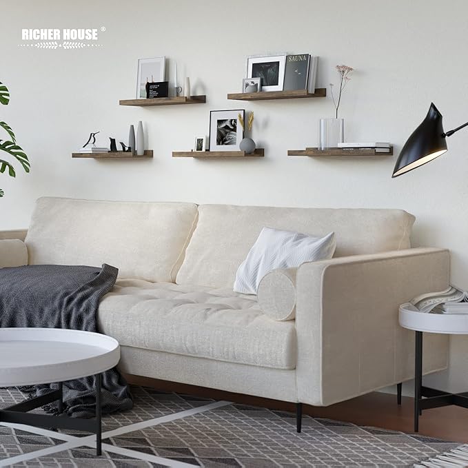 RICHER HOUSE 5 Set Floating Shelves for Wall Decor, Wall Mounted Book Shelf, Nursery Shelves Picture Ledge Shelf with Lip for Wall Storage, Bedroom, Living Room, Bathroom - Brown