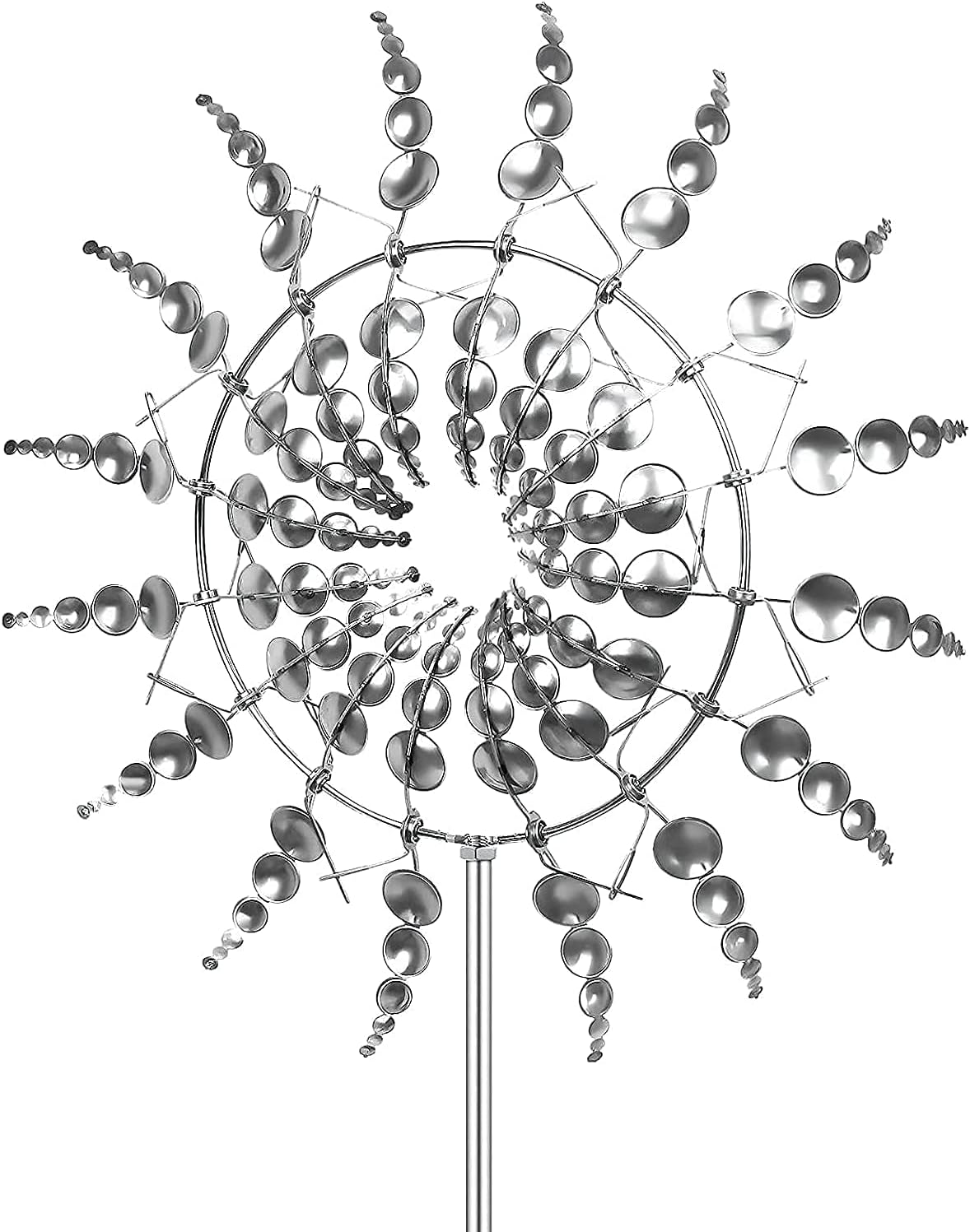 • ☘️【SPECIAL DESIGN】Each blade of this yard spinner is designed to spin in different directions, ball bearing construction allows our wind catcher to quietly spin even in the slightest breeze.The metal windmill sparkles in the sun, and you can enjoy your garden ornament.