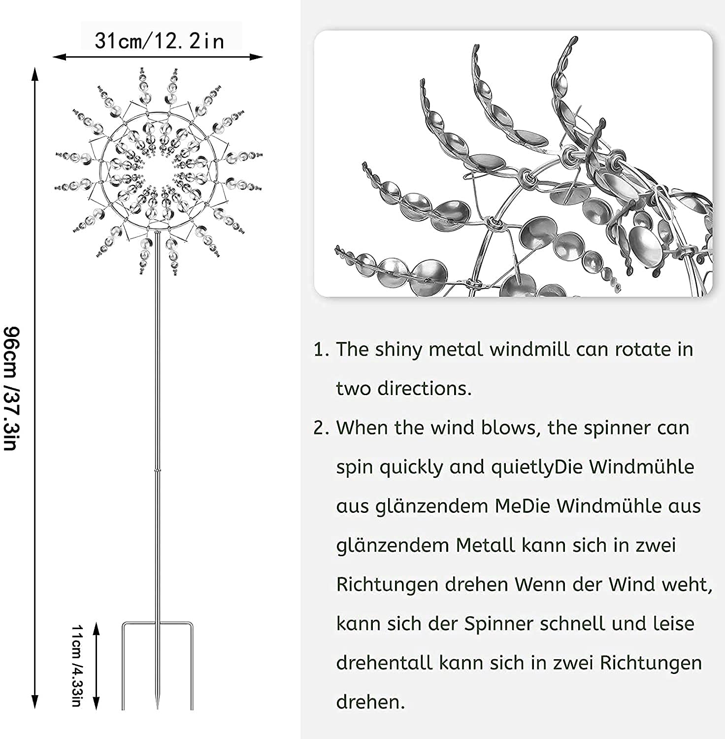 • ☘️【STABLE, STURDY WITH MODERN】Many wind spinners outdoor come with a single blade that spins in one direction. Our solar wind spinner has a solid metallic construction with dual wind motion.Featuring modern functionality with period charm, our durable yard wind spinners have a stability stake at the base to ensure its firmly planted for windy days.