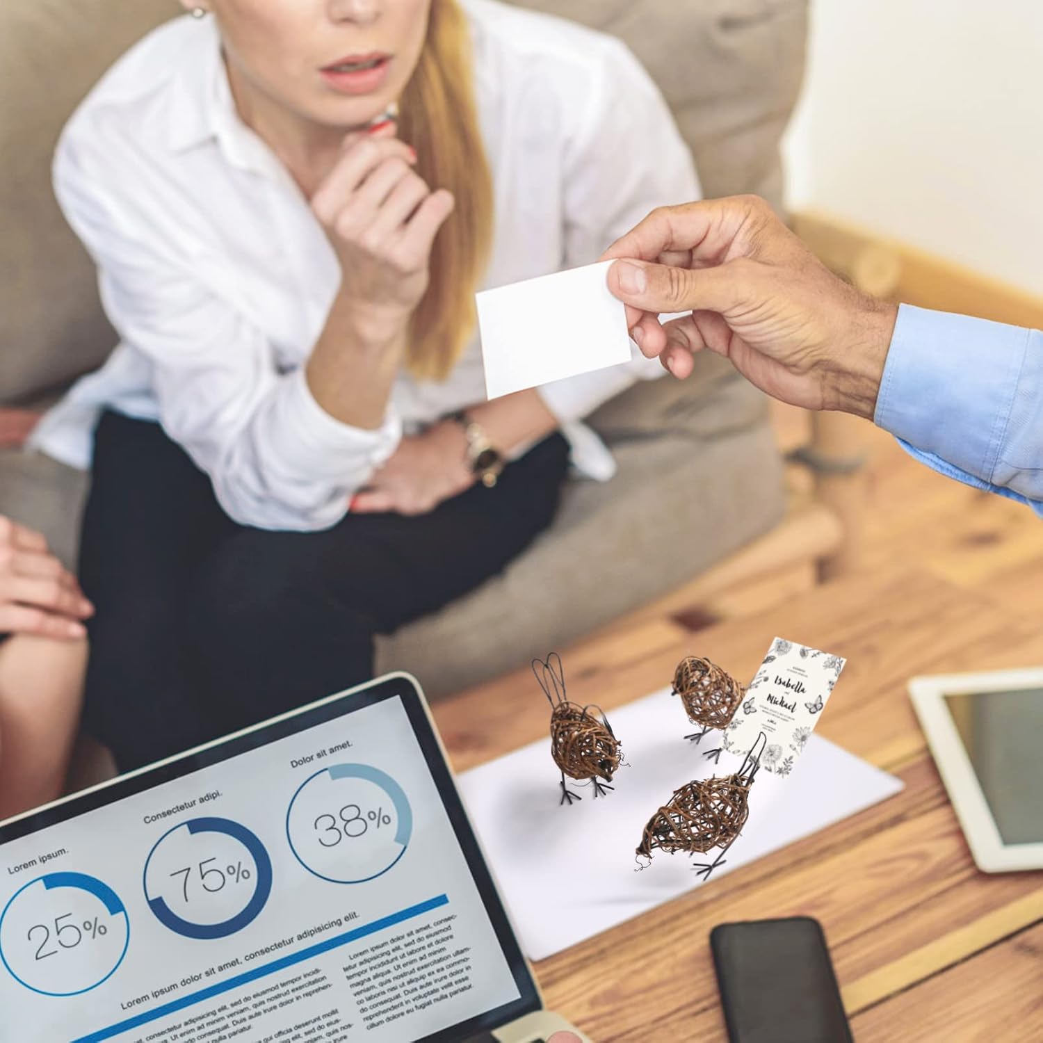 Natural Farmhouse Decor Set of 3 - Handwoven Rattan Bird Statue Table Decor, Multi-Pose Shelf & Mantel Accents